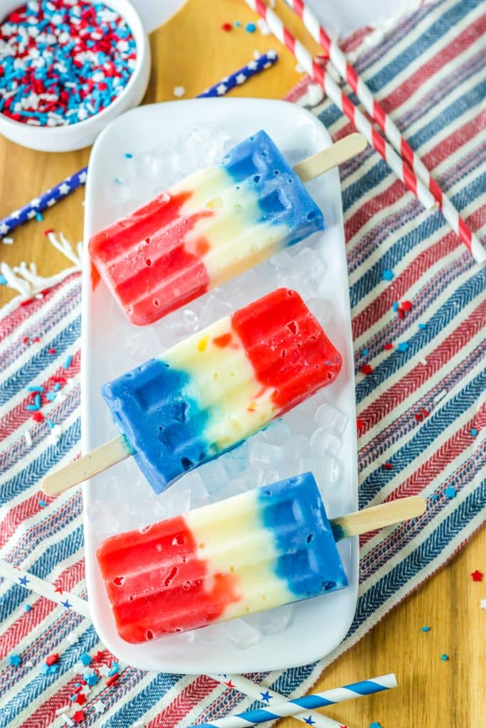 Red, White & Blue Pudding Pops Frozen pudding pops are always a hit with kids, and this red, white, and blue version is no exception. Creamy layers of vanilla and berry flavors make them the perfect make-ahead treat for your summer celebrations.