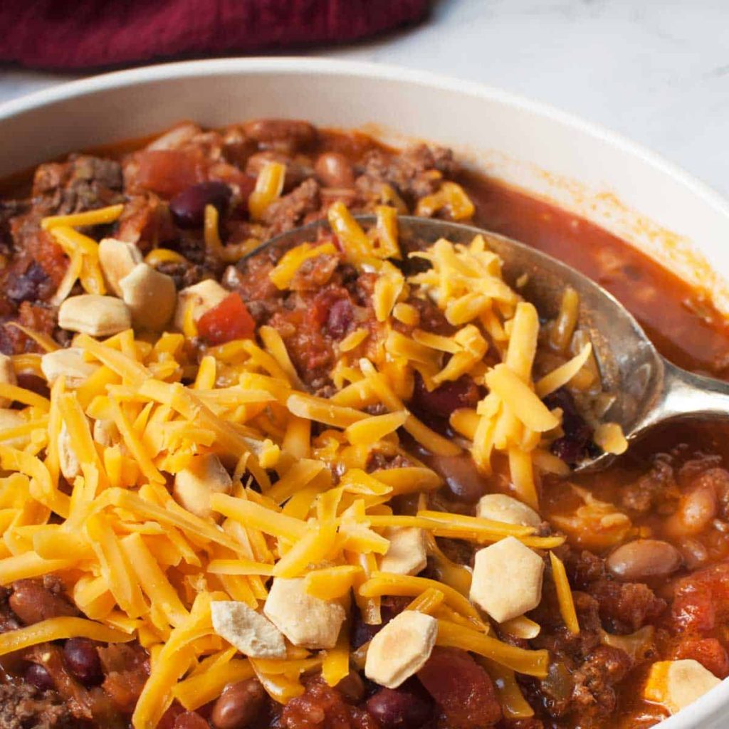 This Slow Cooker Chili Mac is a family favorite classic. Rich, hearty chili slow cooks all day before getting lots of melty cheese and noodles mixed in. This is flavorful, delicious and always a hit.