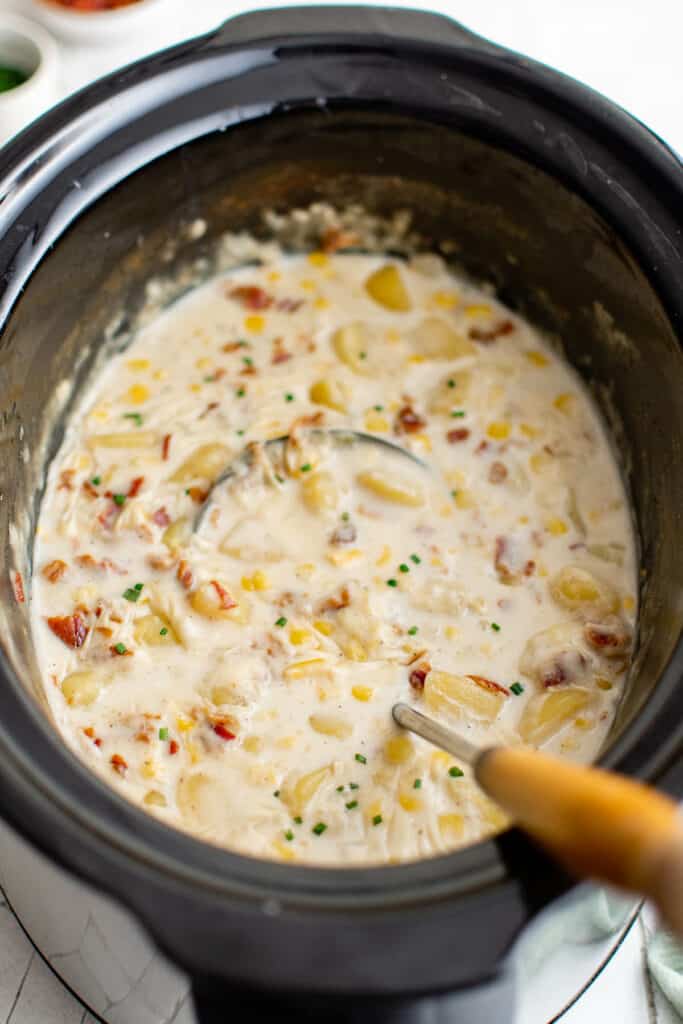 SLOW COOKER CREAMY CHICKEN AND CORN SOUP from Bites with Bri