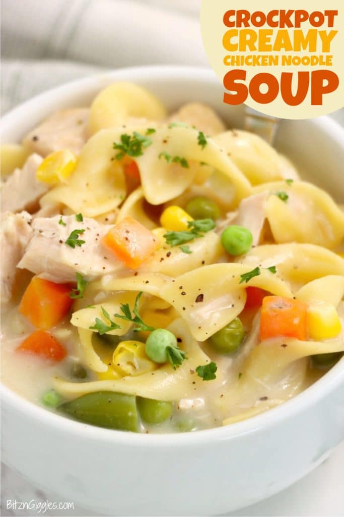 Crockpot Creamy Chicken Noodles Soup from Bitz and Giggles