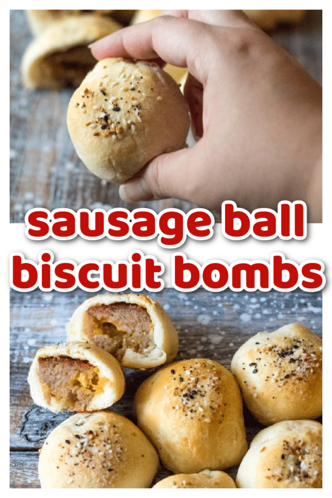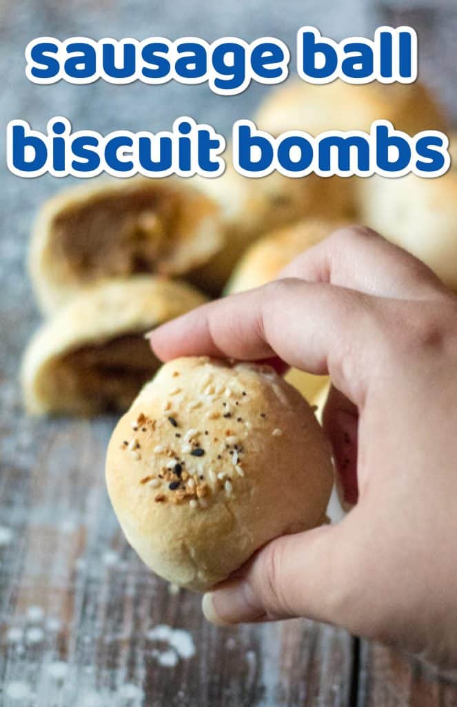 Sausage Ball Biscuit Bombs are stuffed with cheese, baked in a biscuit bomb and topped with everything bagel seasoning to create the perfect bite!