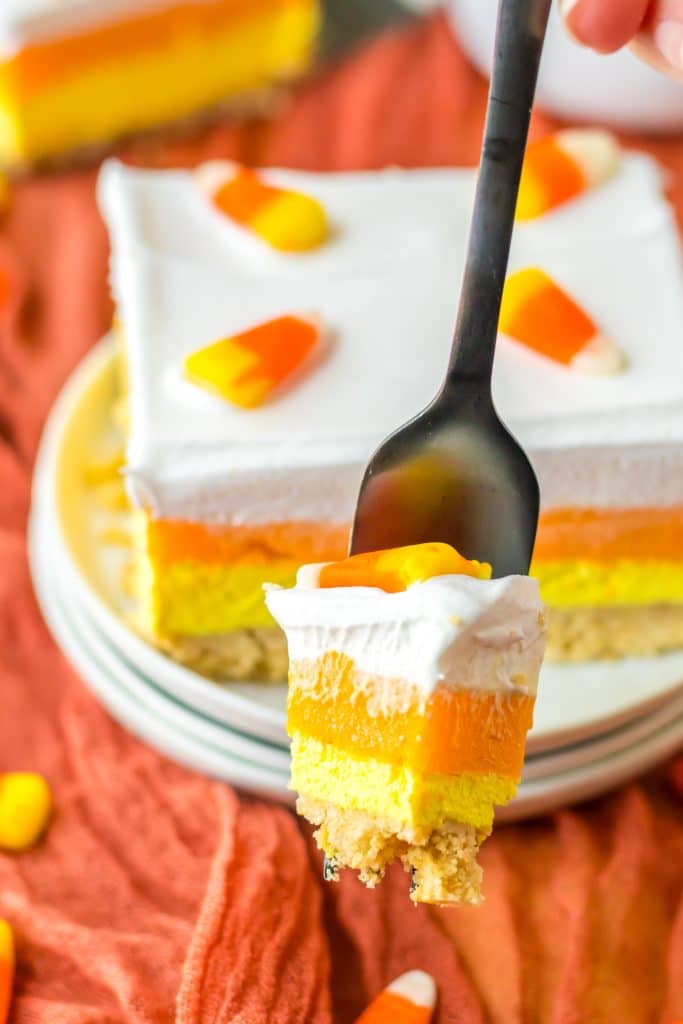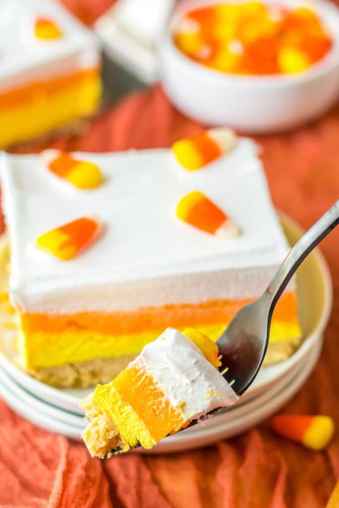 This No Bake Candy Corn Lush is an easy, delicious Fall dessert!