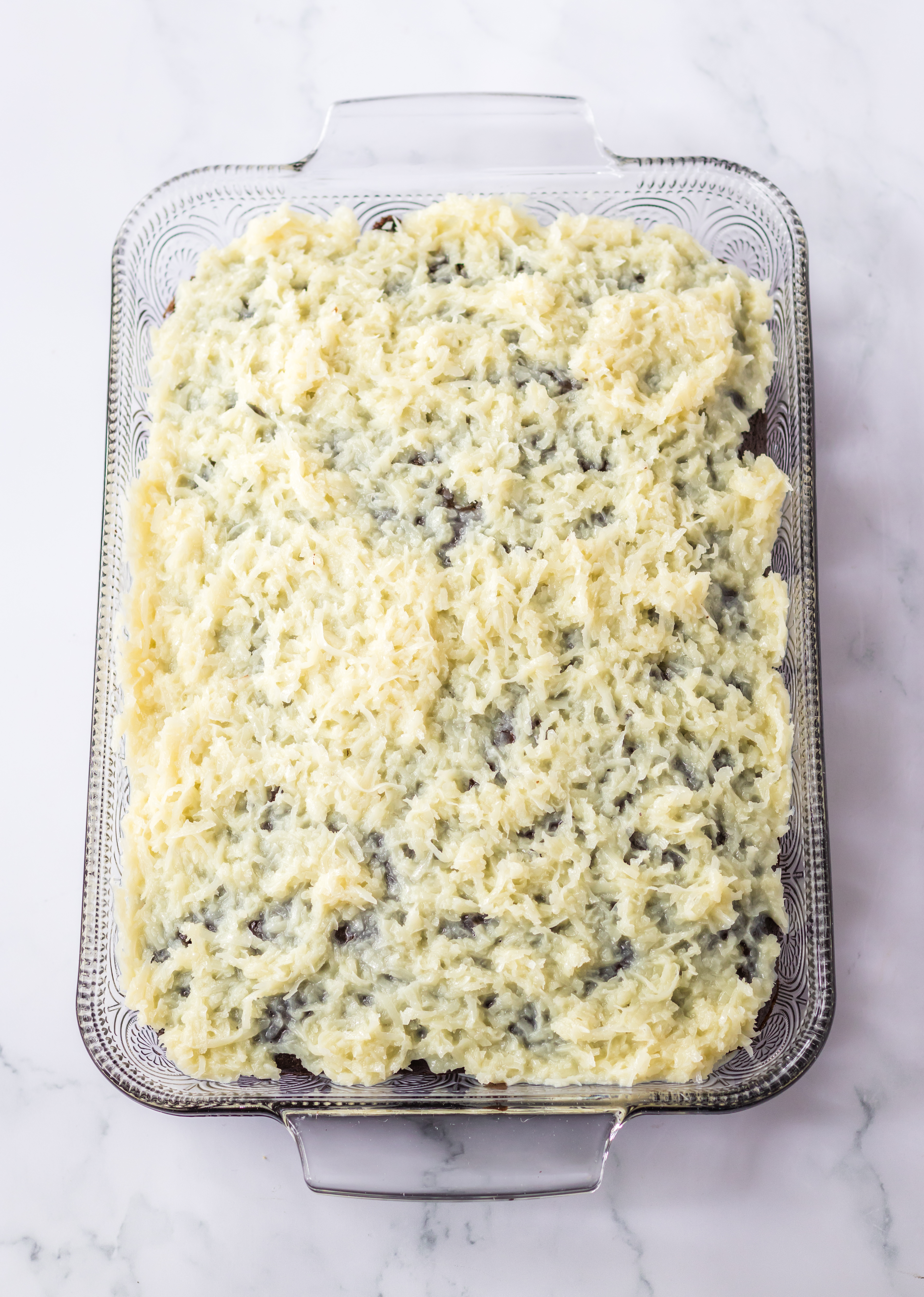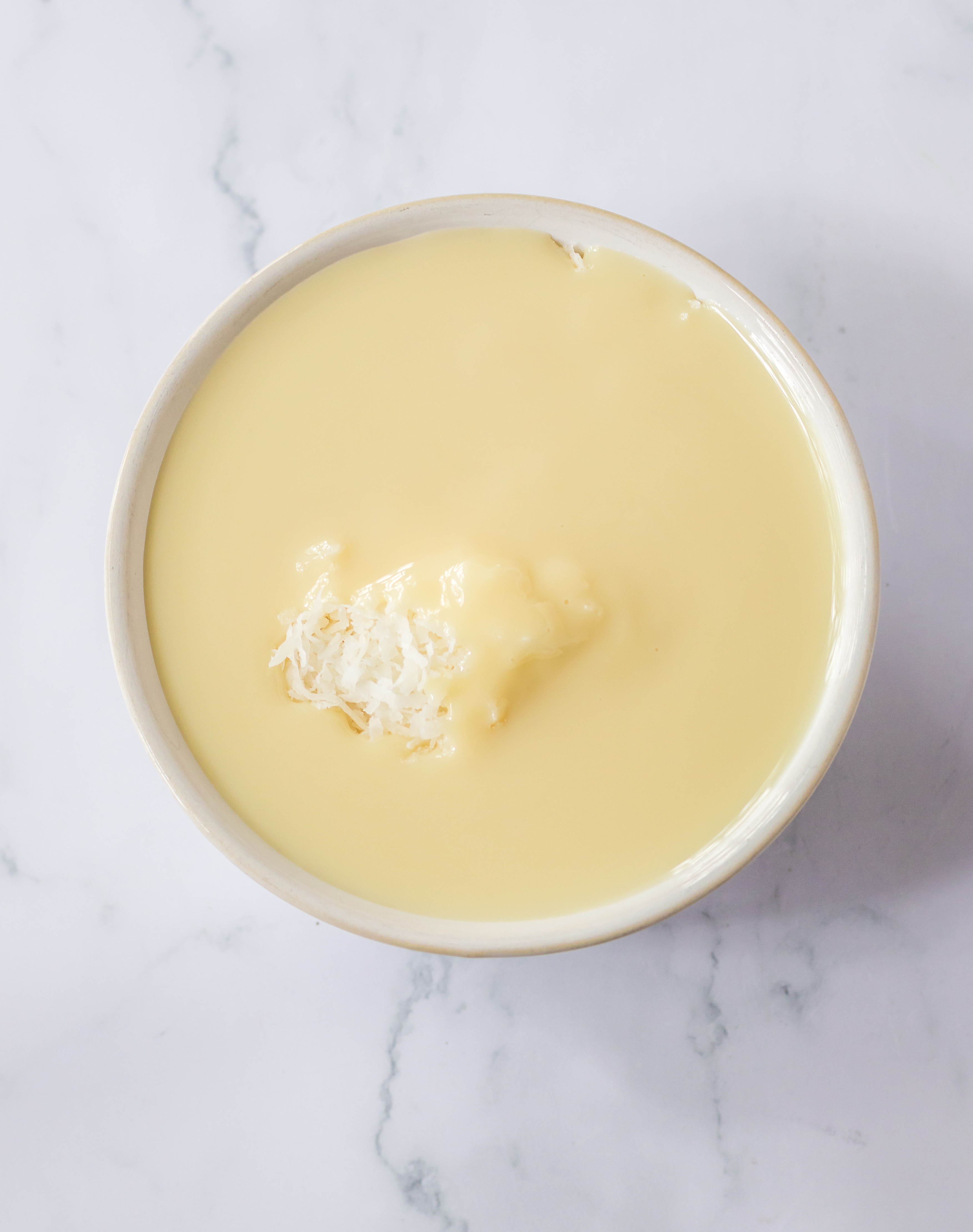 - Meanwhile mix together the sweetened condensed milk and coconut.