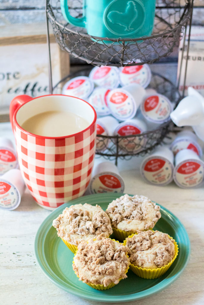 I love to keep a plate of these muffins right by my coffee set up. I like to keep my mugs and K-cups in this cute little basket beside my coffee sign and this adorable cow creamer everyone loves. This way, I am always ready to go in the morning and making my morning cup takes just minutes.