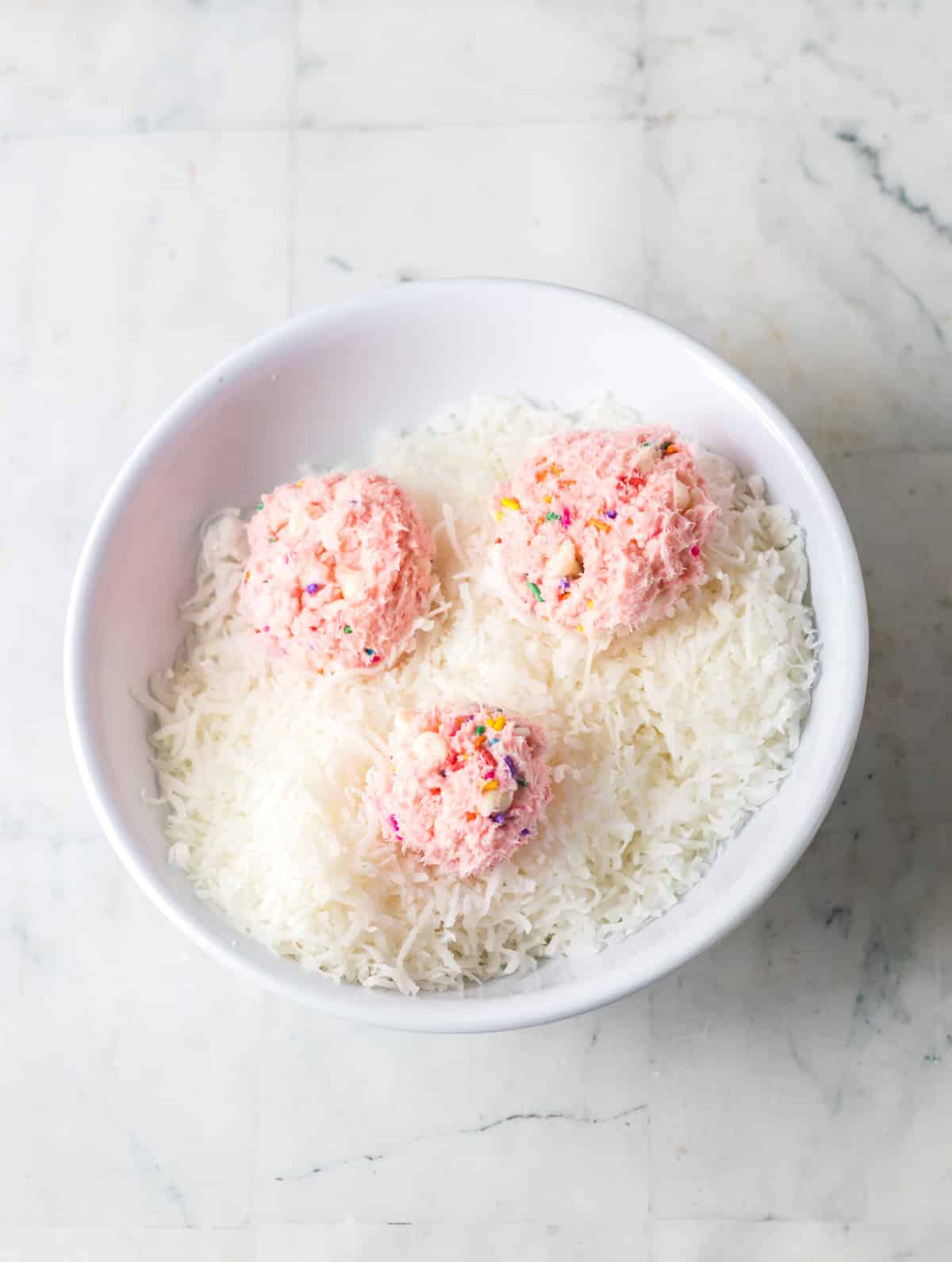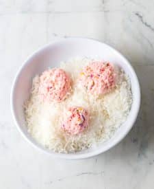 ● You can skip the coconut and roll the balls into powdered sugar or shaved