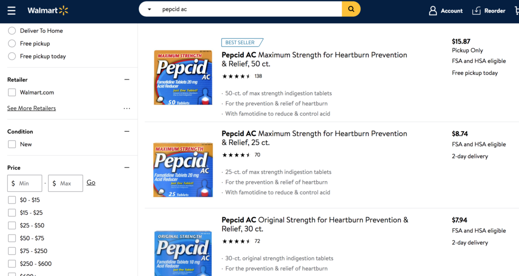 PEPCID AC®, LACTAID® and IMODIUM® right at Walmart when I do my weekly grocery order and I just add them right to my online cart and then I can have them delivered or I can pick them up. Such a timesaver!!