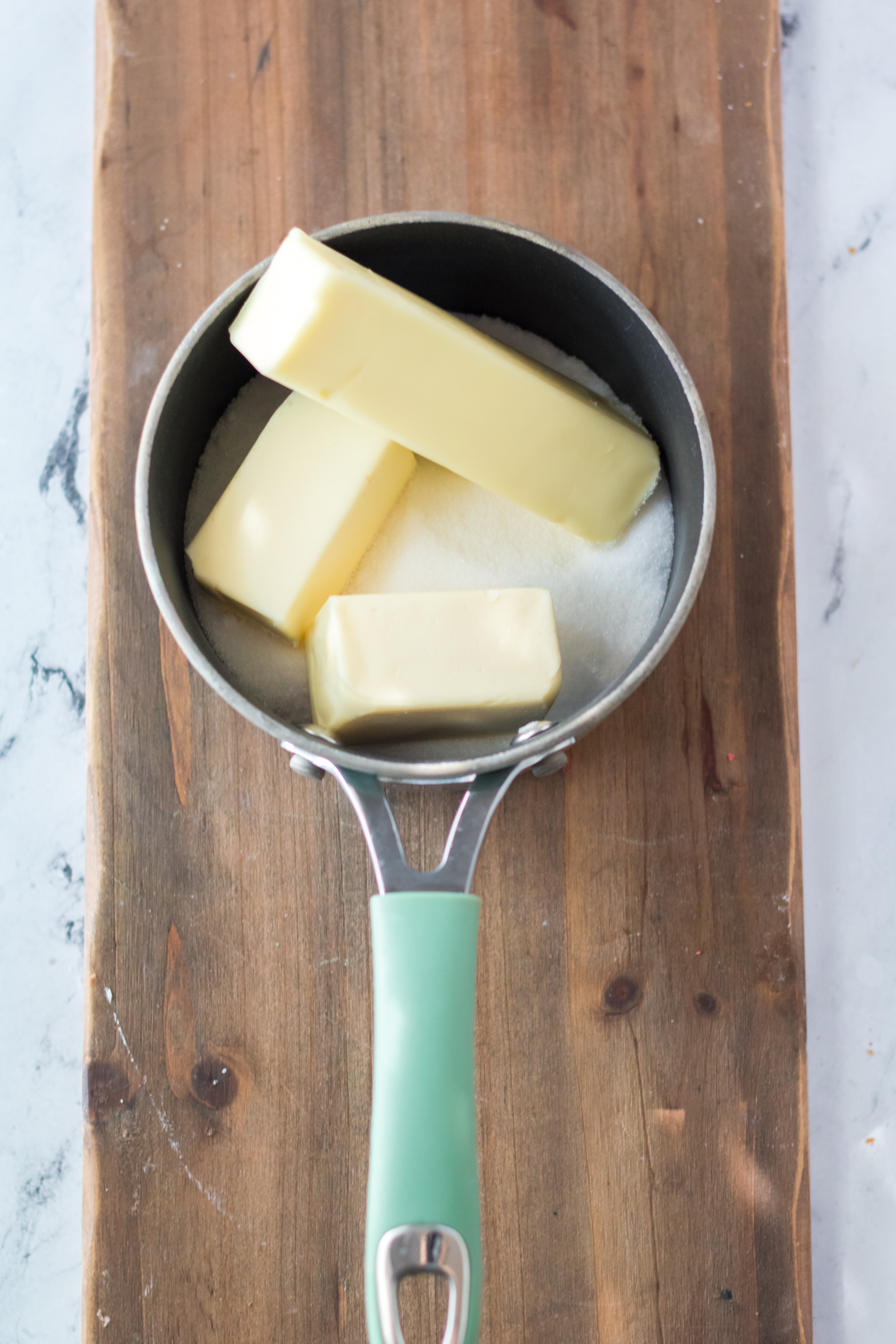 - In a medium saucepan, cook and stir butter, sugar and salt over medium heat until butter is melted.