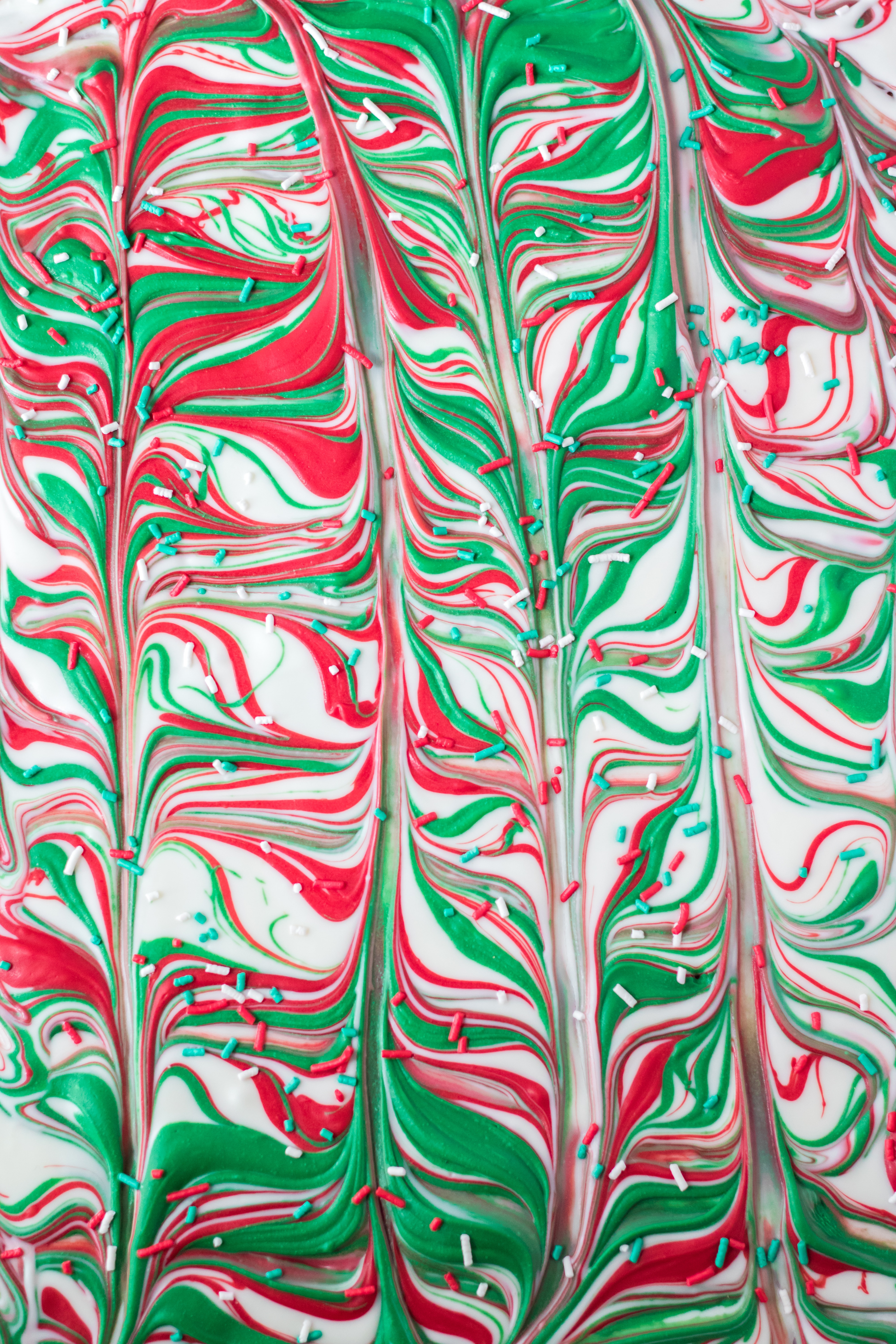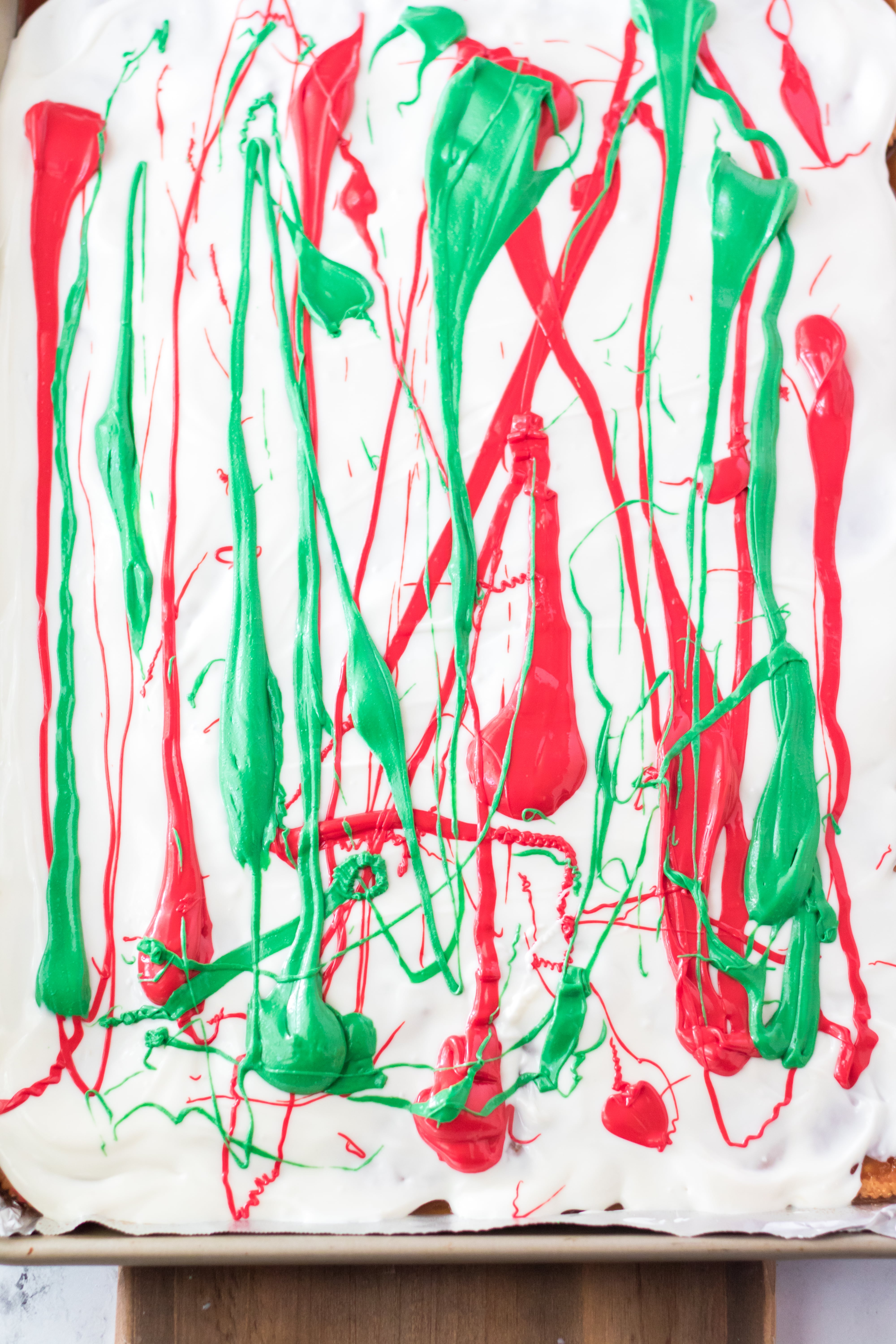 - Drizzle the red and green chocolate on top of the white.