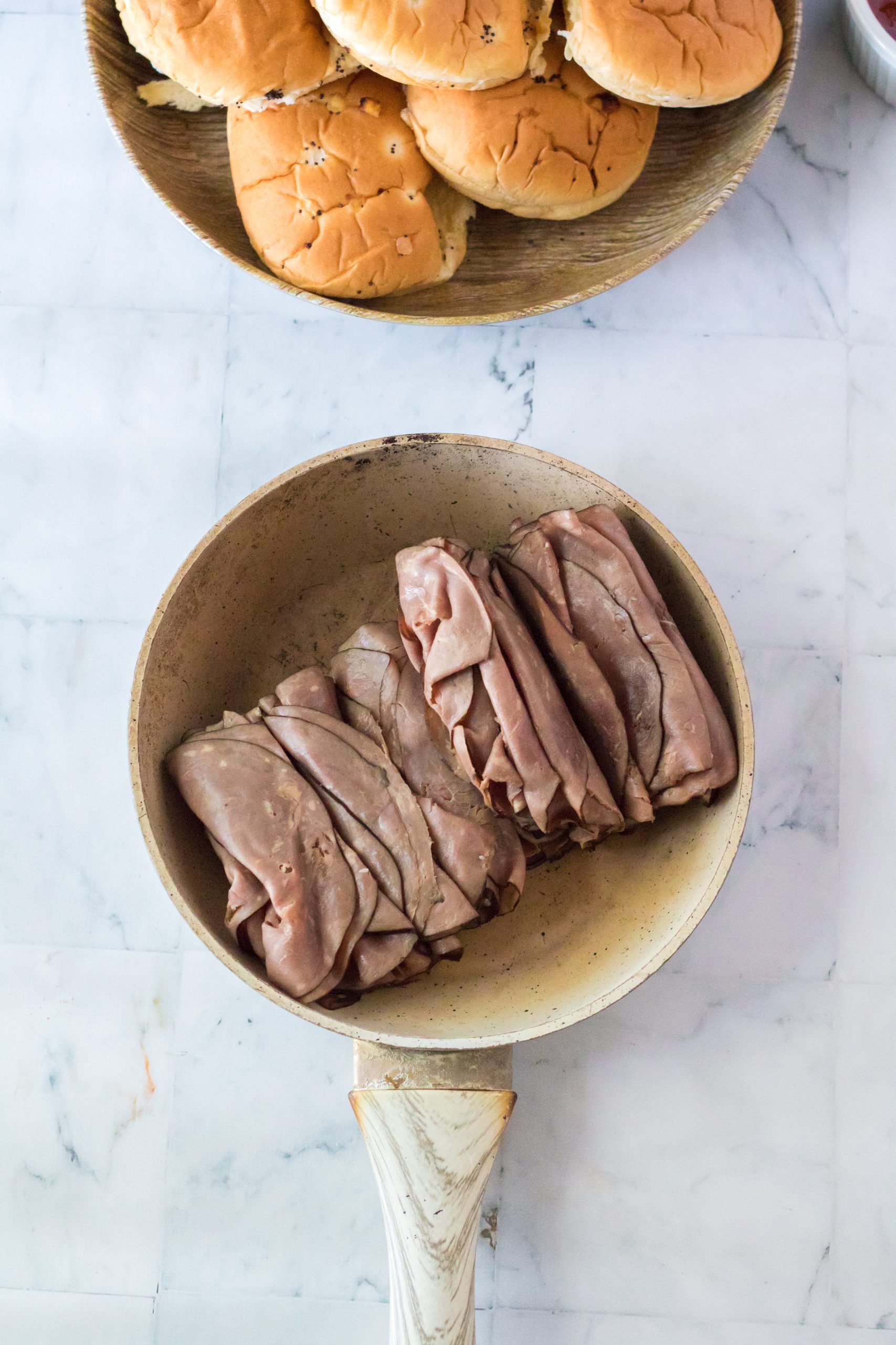 4. Drain any water off your roast beef and you are ready to assemble.