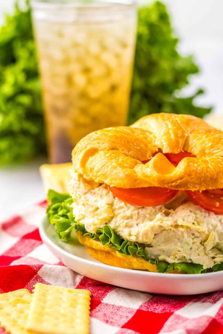 This is perfect for serving on buttery croissants just like the store or I prefer thick sliced bread. You can but you can make lettuce wraps or lettuce cups out of this easy chicken salad recipe and serve with a few crackers for dipping.