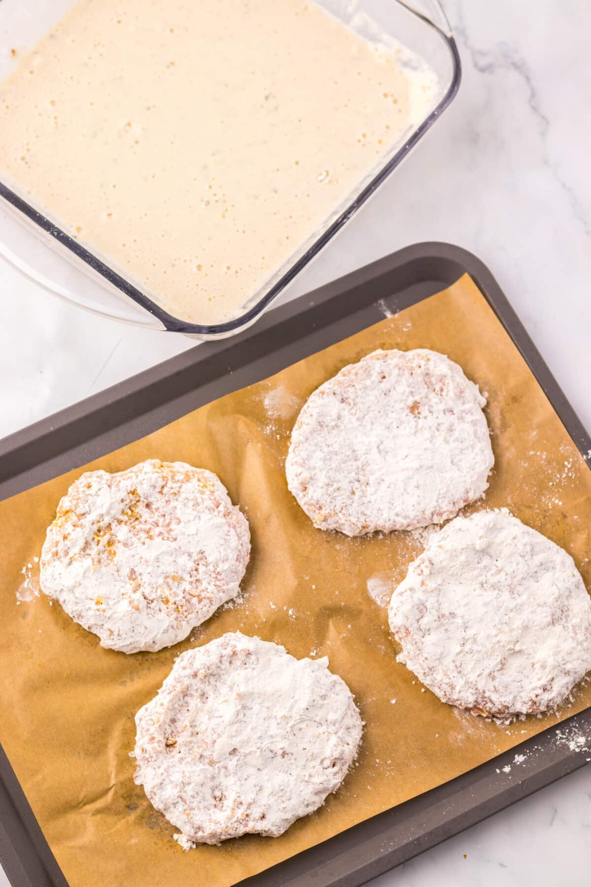 - Lightly coat the patties in the flour mixture and set patties aside.