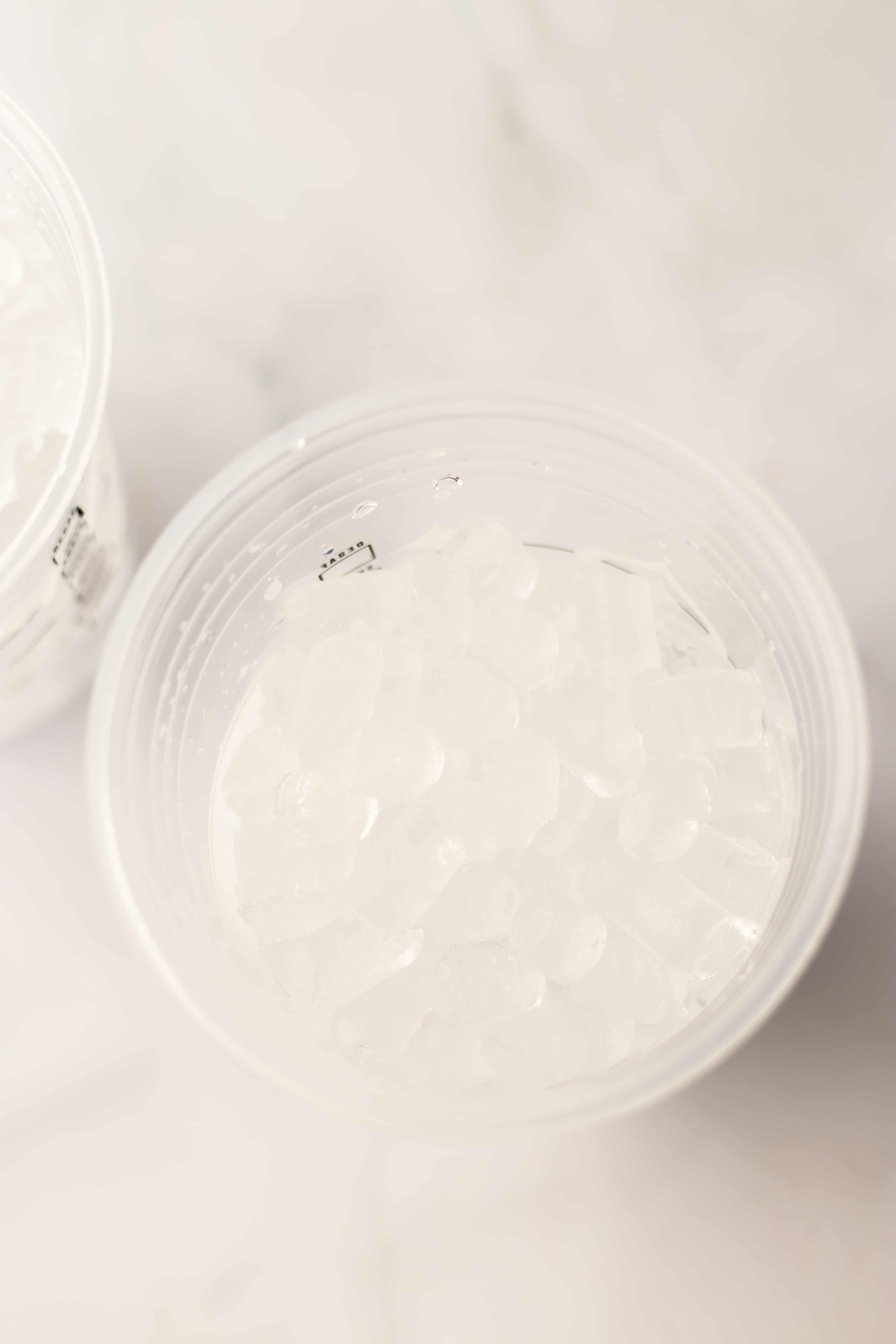 1. To your cup add ice and some freeze dried strawberries, as much ice and