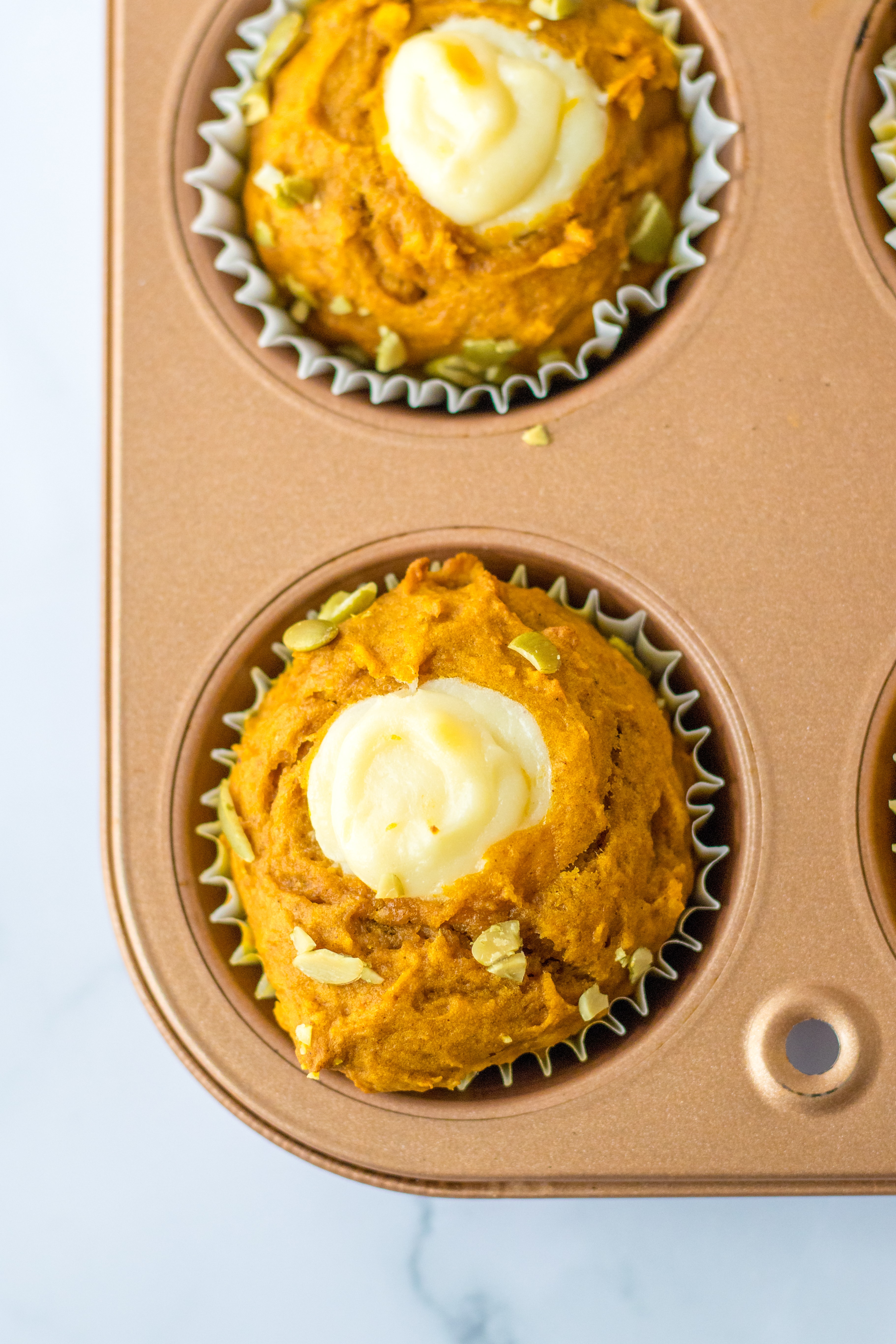 Of course, you can easily make these pumpkin cream cheese swirl muffins if you like. Just use a knife or toothpick to swirl the cream cheese into the pumpkin batter.