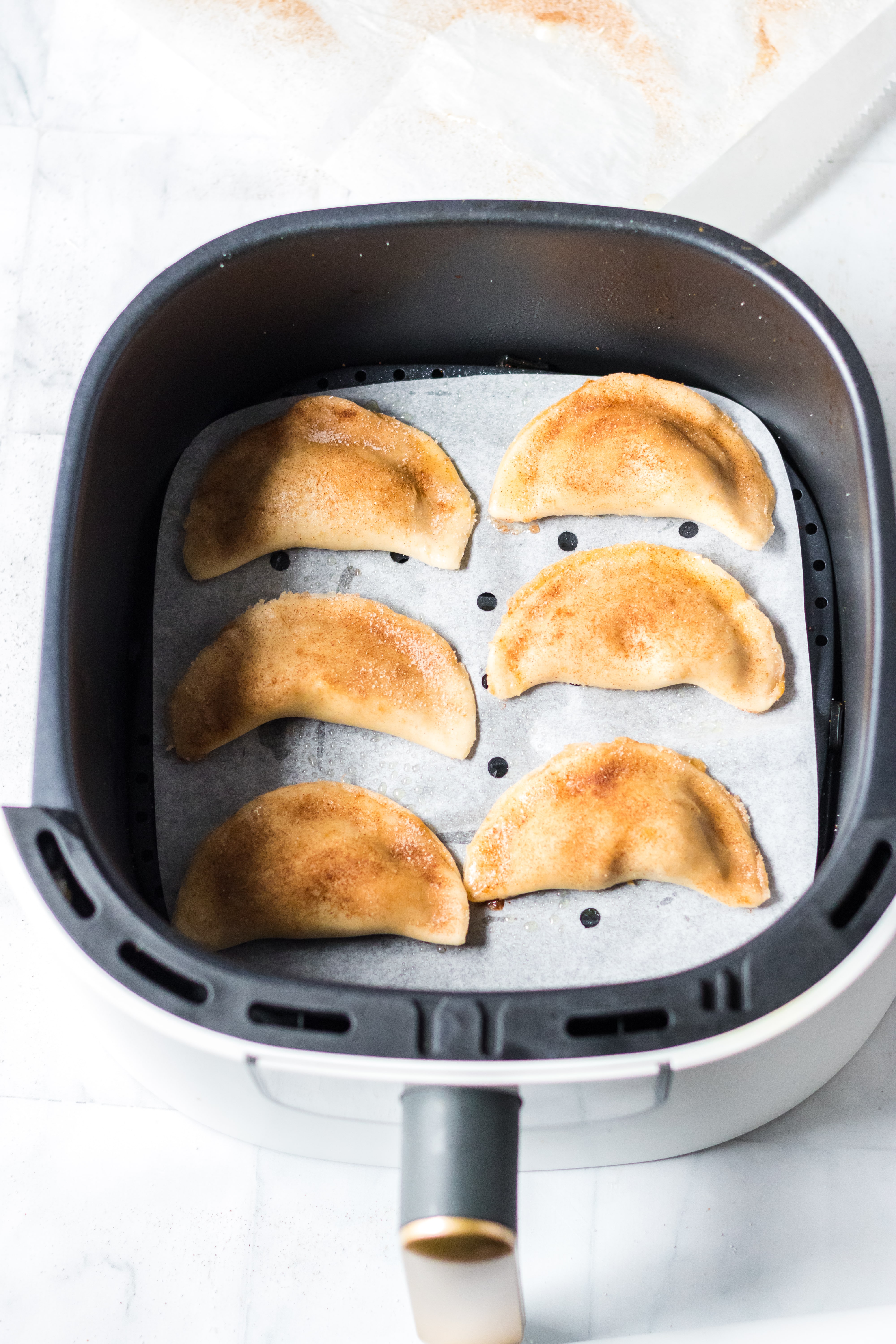 Everyone is always sad that Taco Bell discontinues the Caramel Apple Empanadas so I decided to recreate them using the air fryer! Apple pie filling, caramels and pie crust make these empanadas easy and delicious. They get brushed with butter and cinnamon sugar before air frying to crispy perfection.