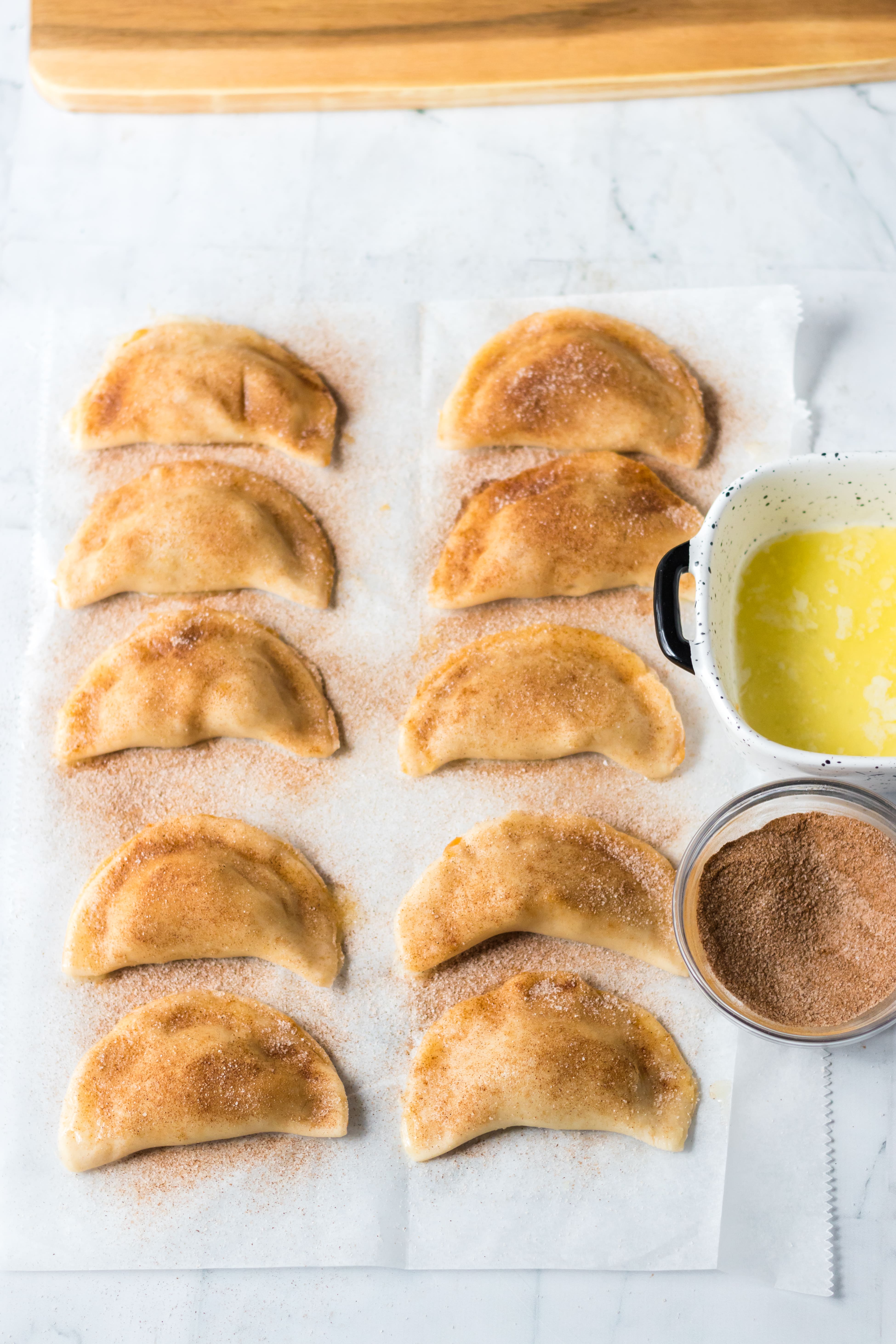 8. Brush each empanada with butter and the cinnamon sugar mixture.