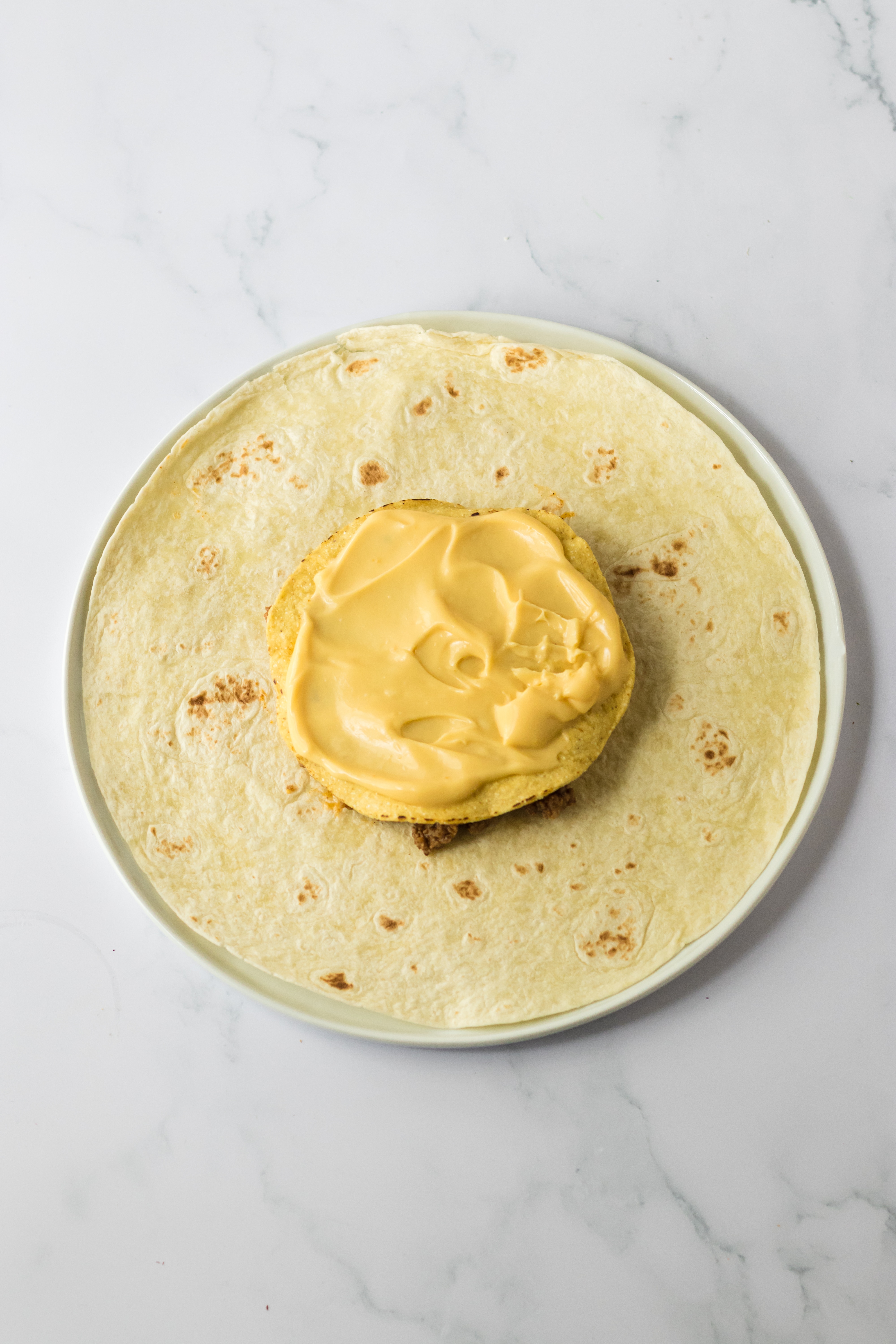 - Place the crunchwrap seam side down and cook until golden brown, about 3 minutes.