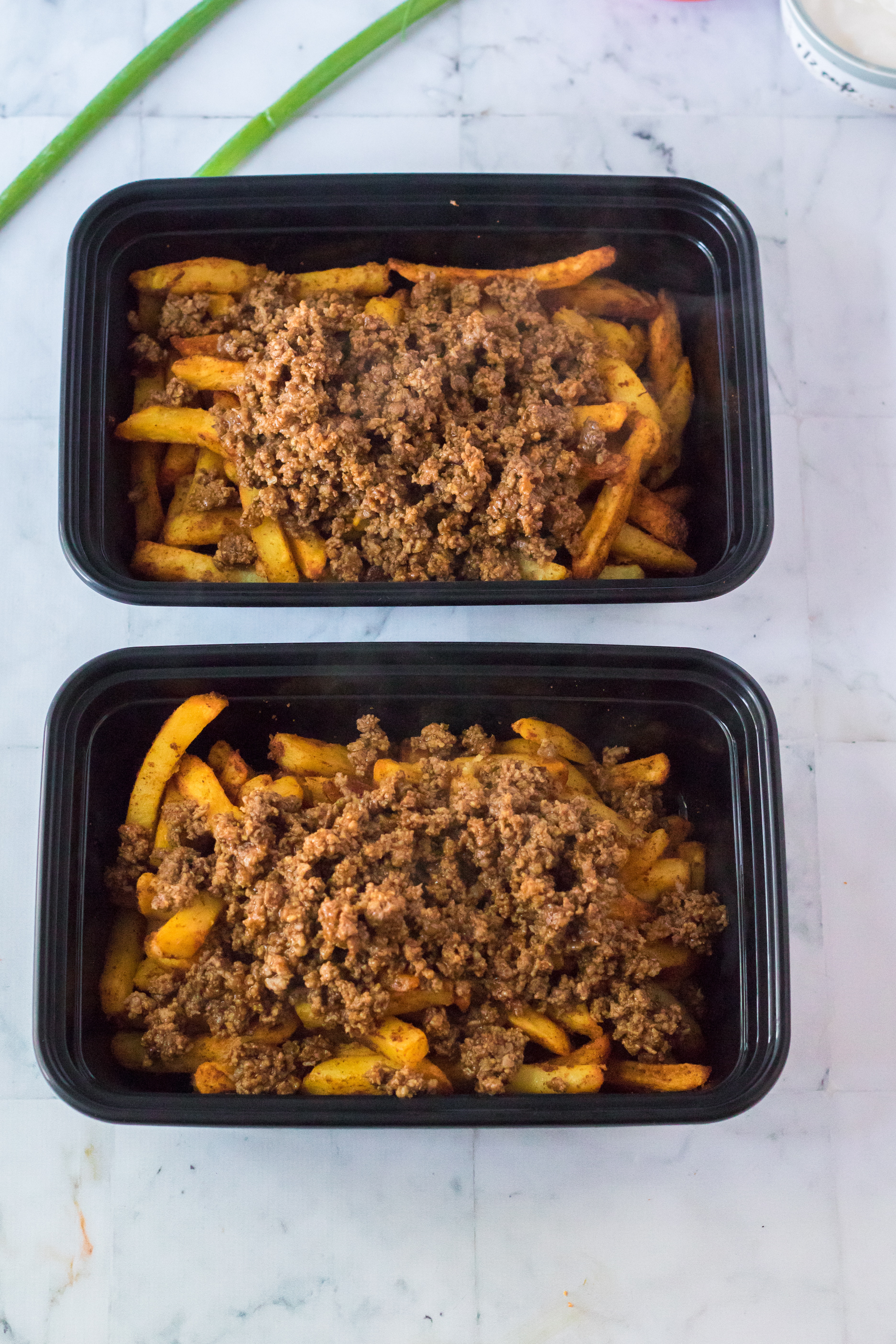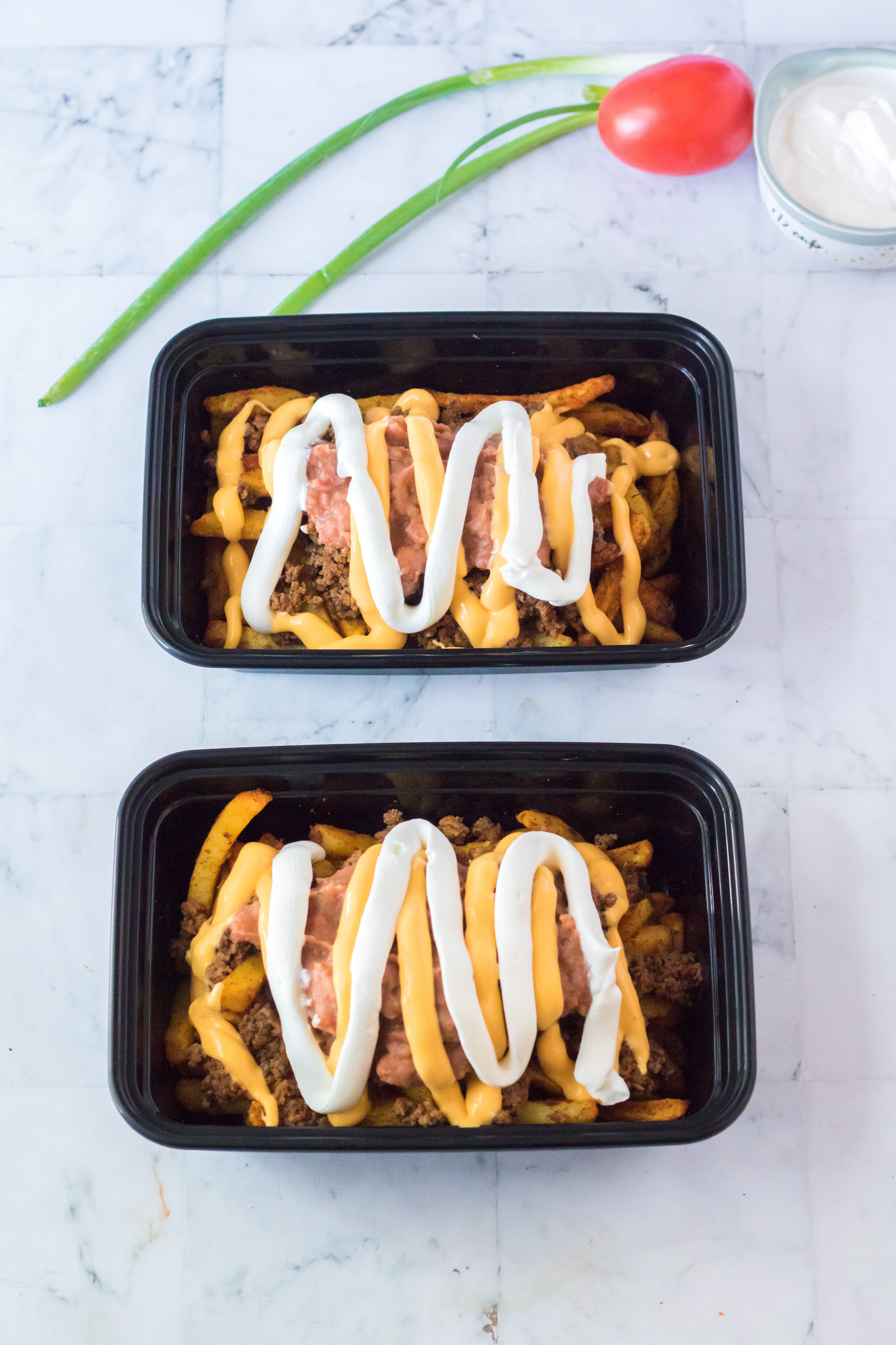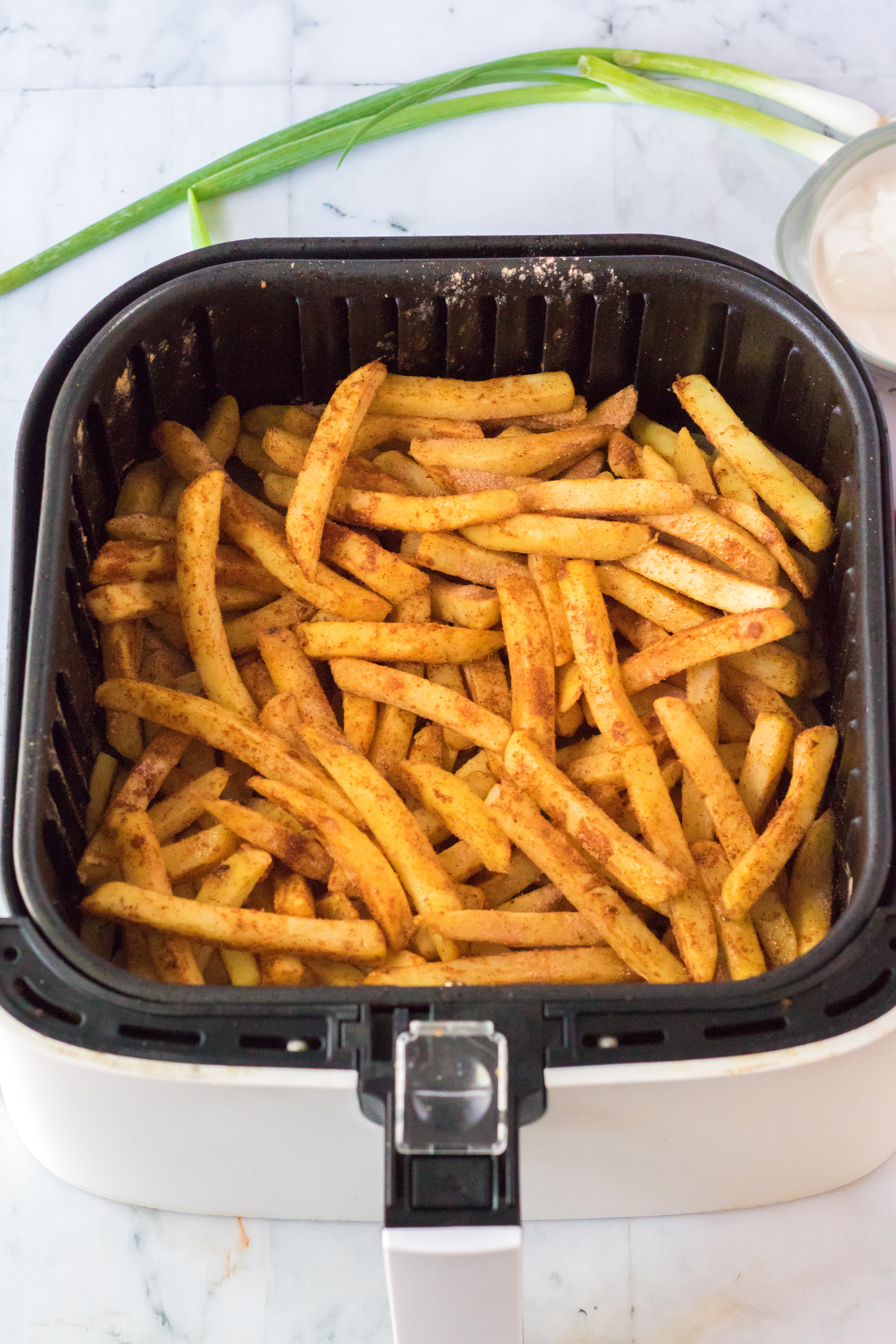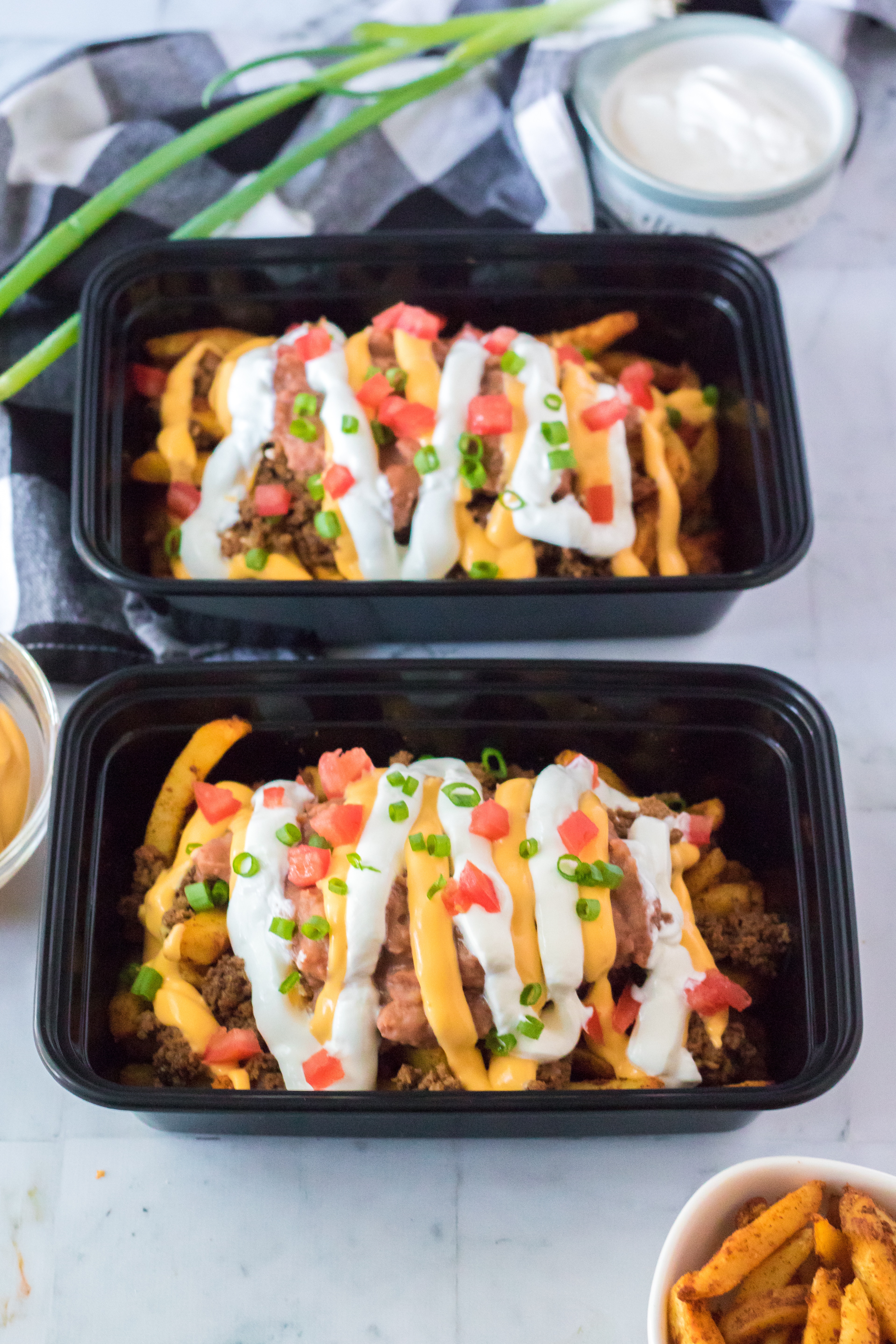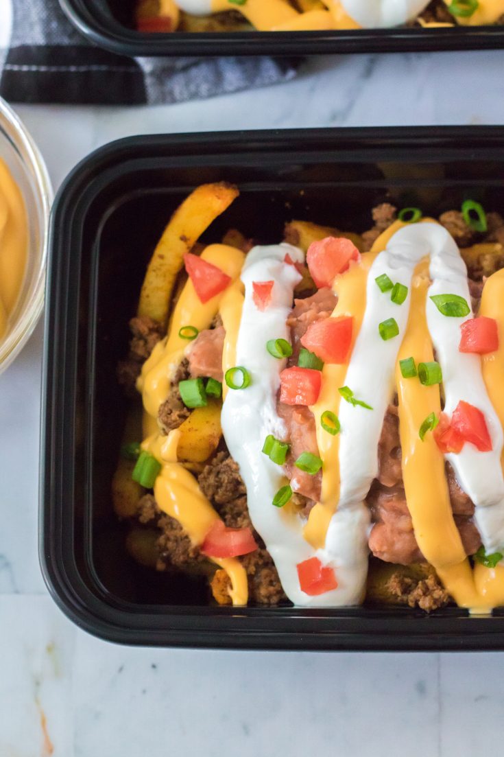 I like to cook the fries in the air fryer to get them super crispy while the taco meat cooks up and then that is all, dinner is done in minutes!!