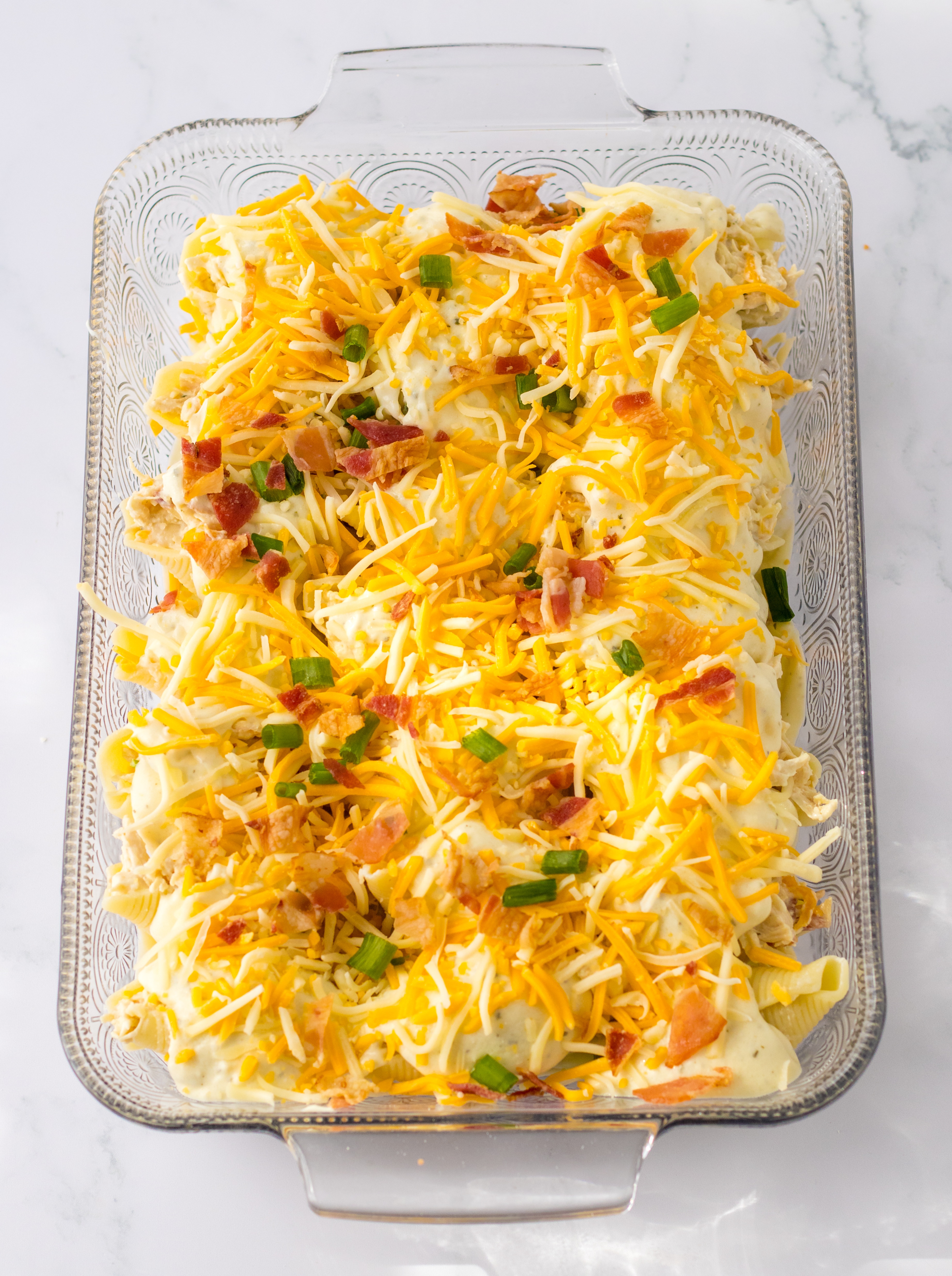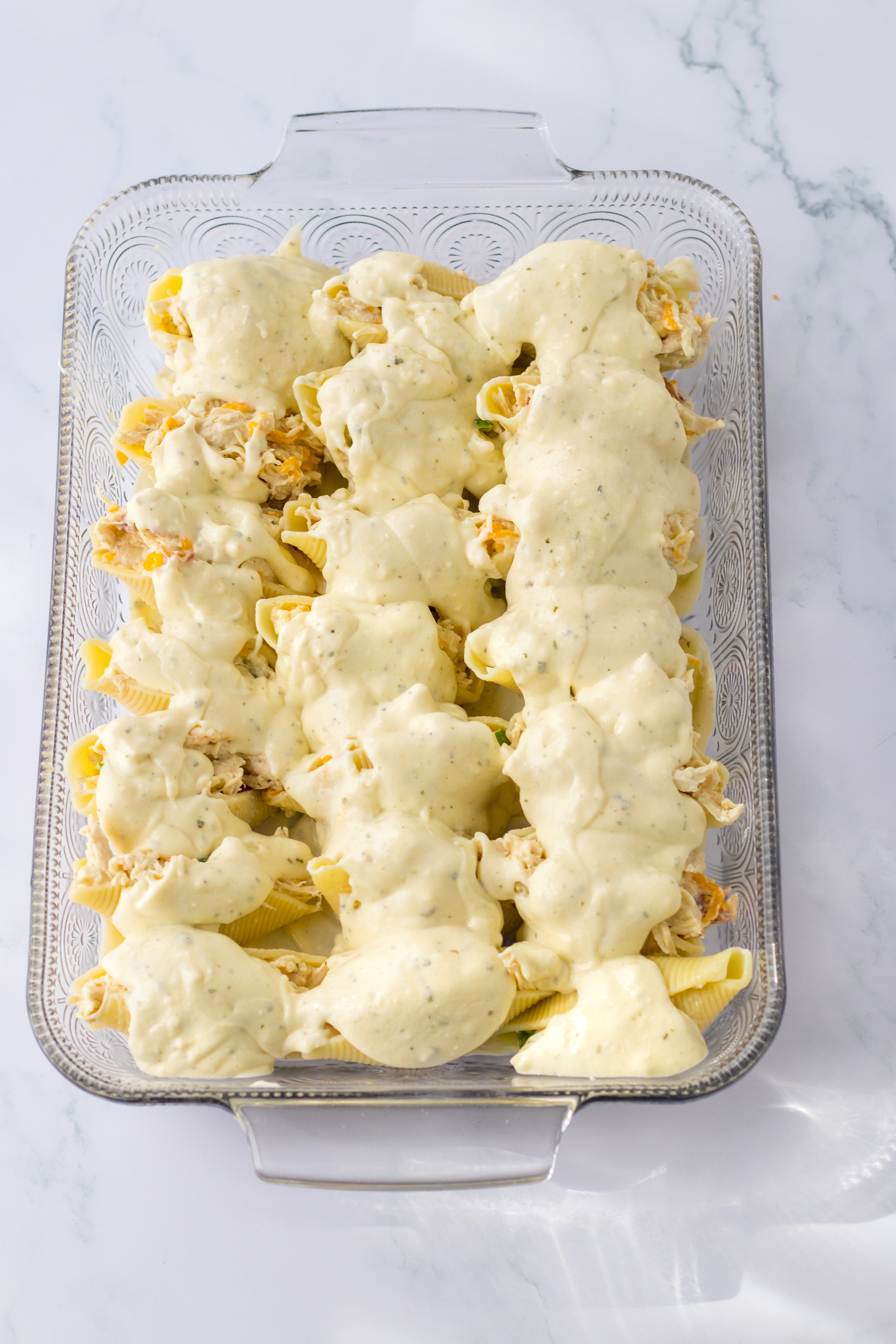 These shells are full of tender chicken, ranch seasoning, cheese and bacon to create the ultimate delicious chicken stuffed shells.