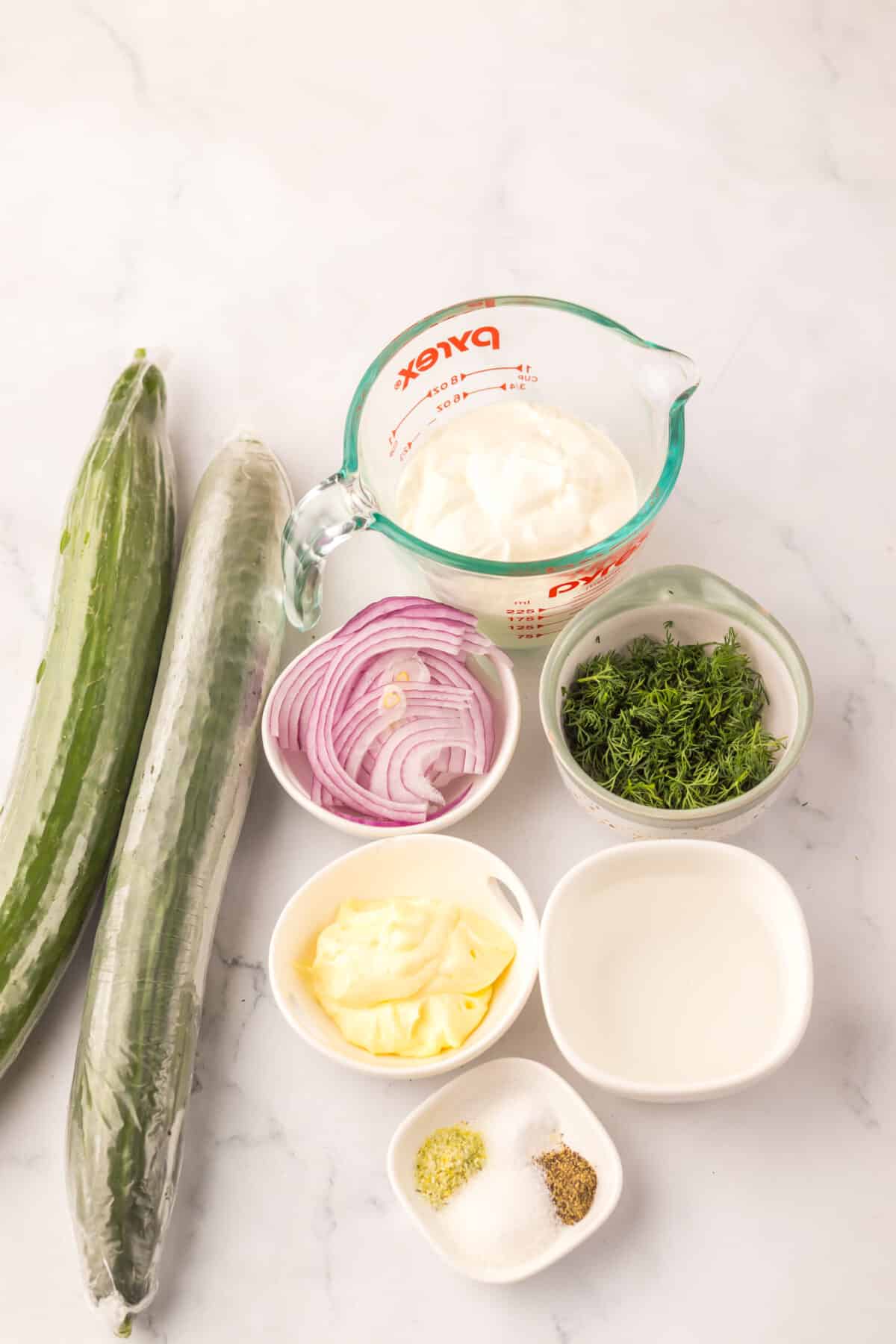 Ingredients used for this creamy cucumber salad recipe: