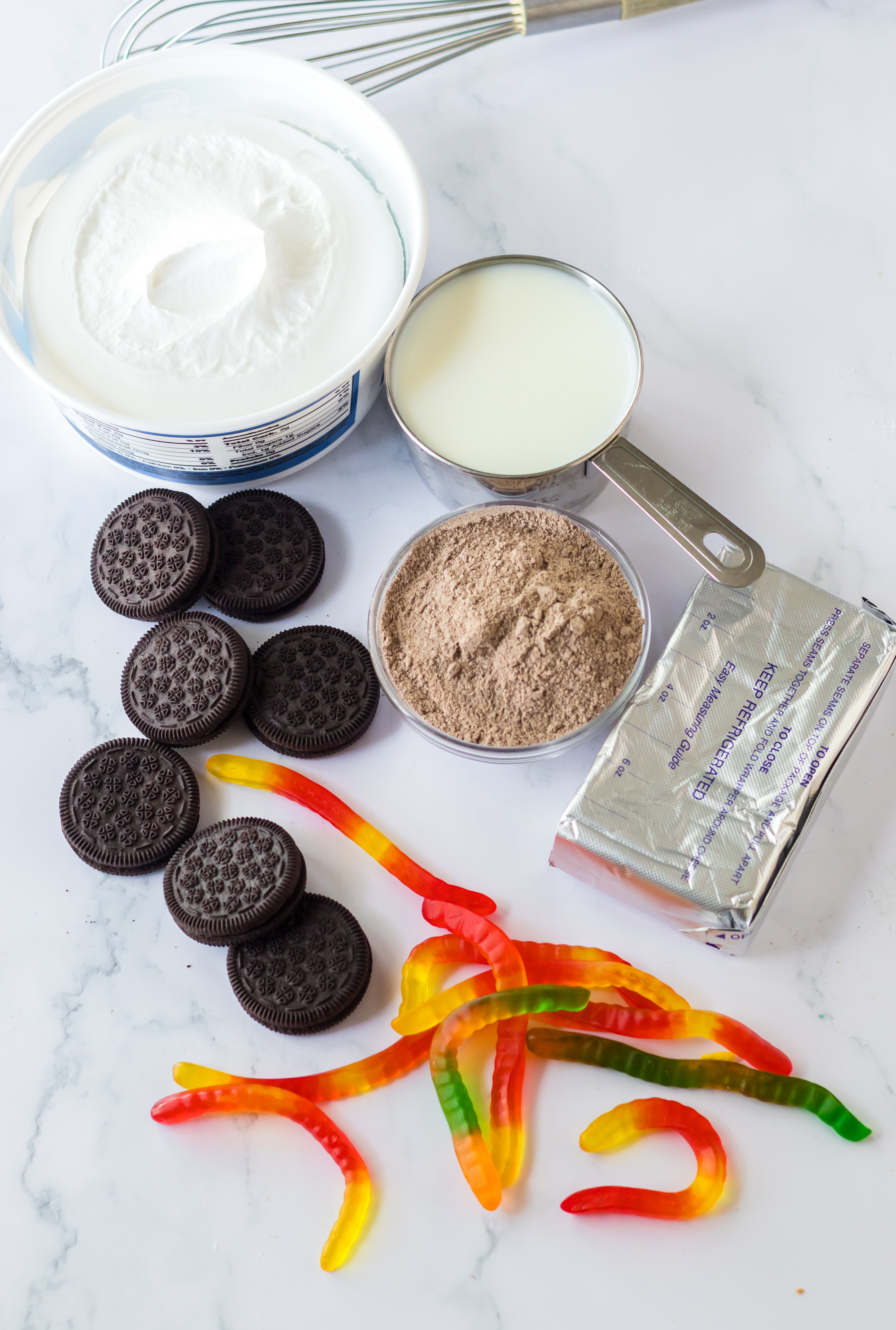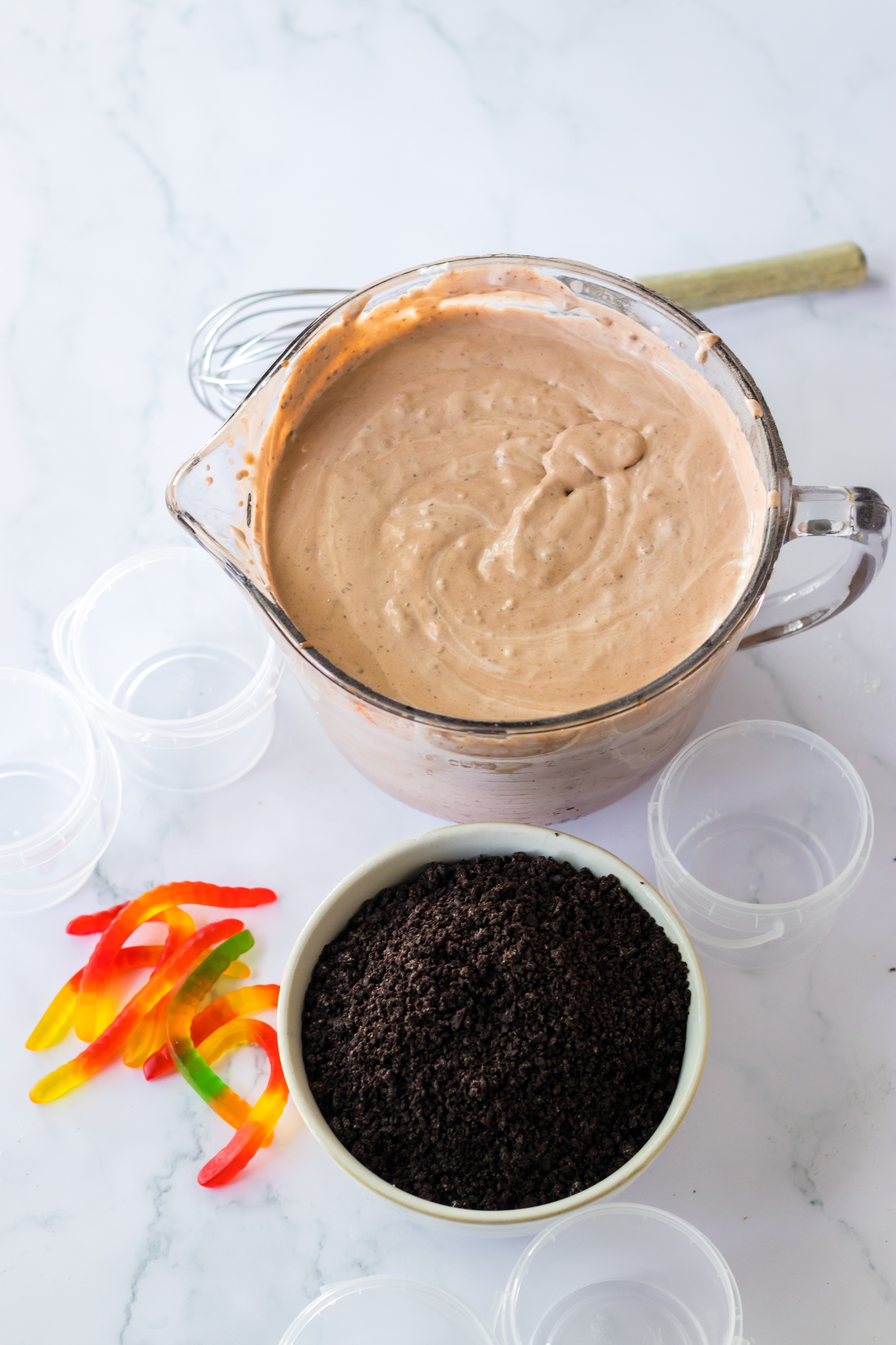 - Gummy Worms – You can use regular or sour worms or any other gummi bugs.