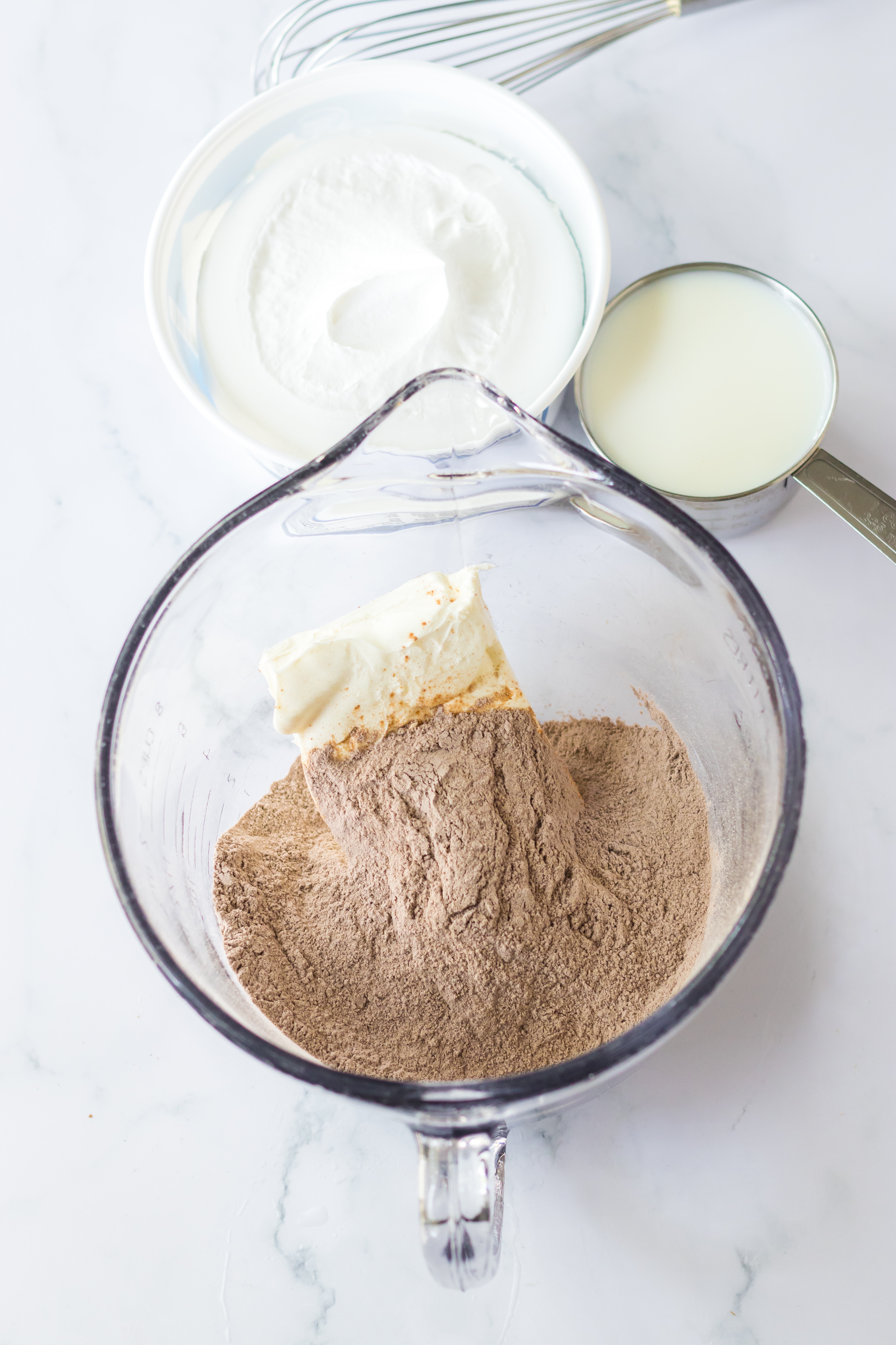 - Using the electric mixer add the milk a little at a time until everything is combined.