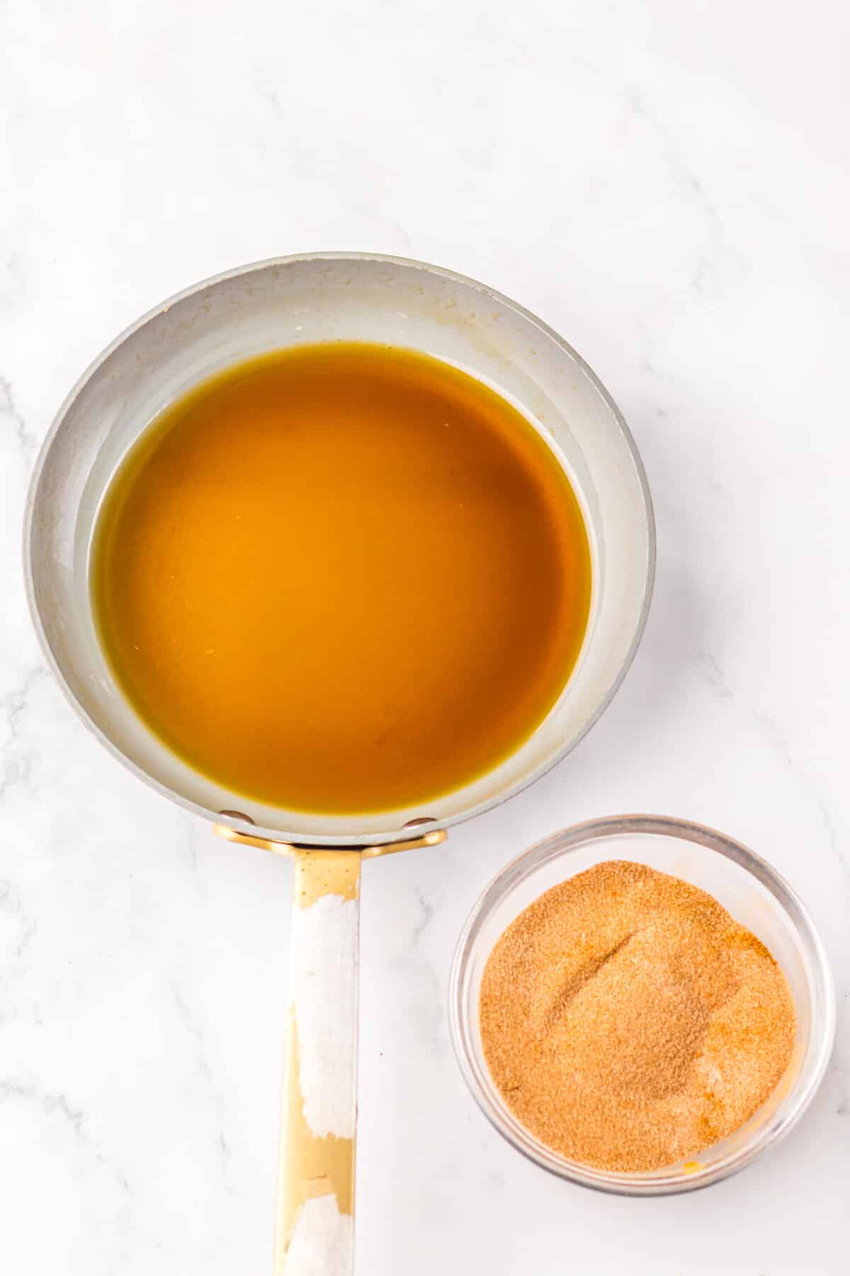 In a shallow bowl, whisk the granulated sugar and cinnamon together until evenly combined. Set aside.Reduce the apple cider