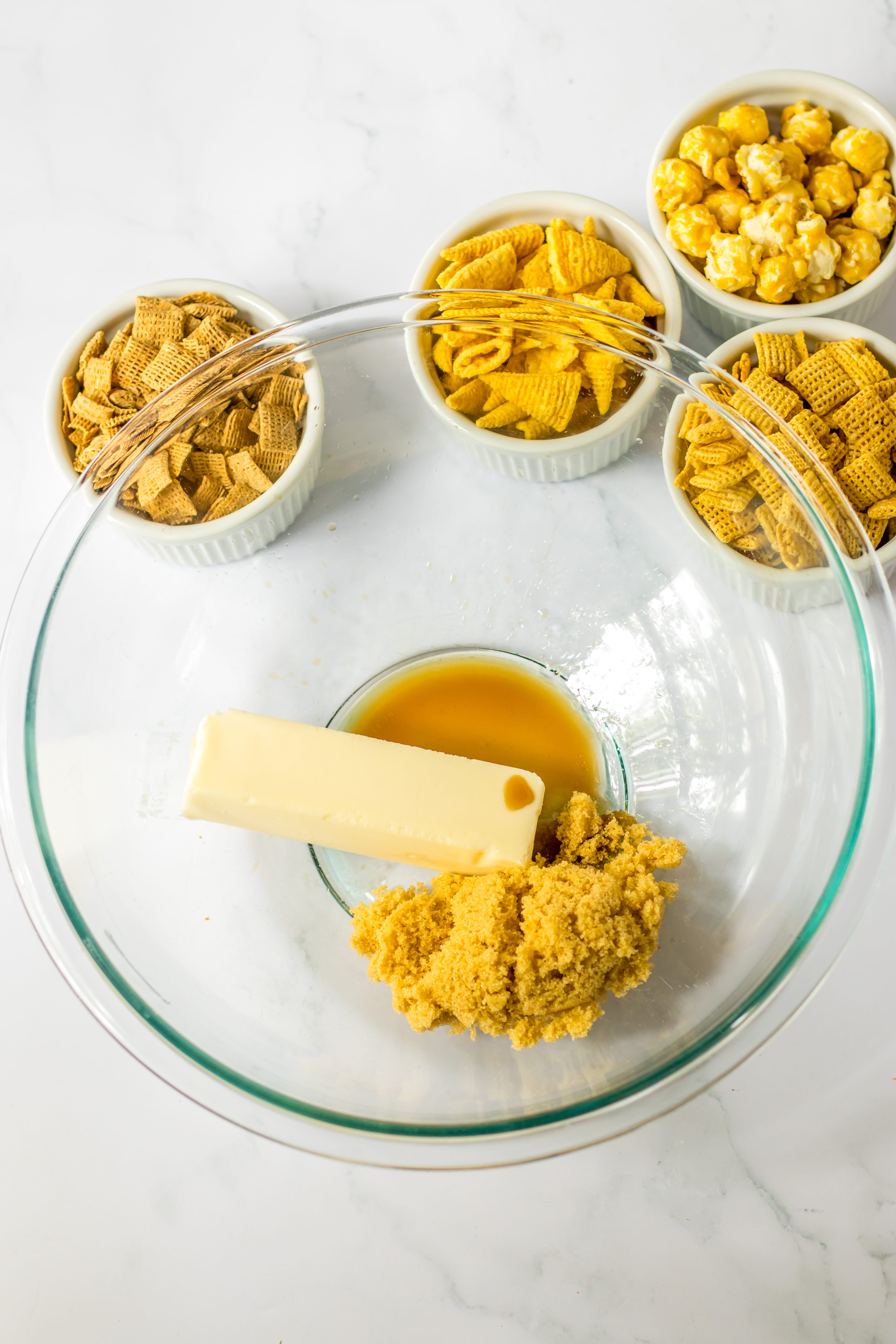 - Butter – This creates the buttery coating for this mix.