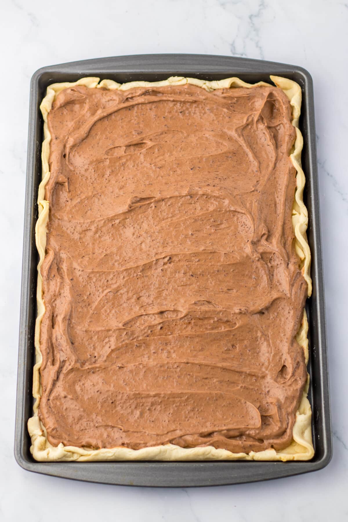 French Silk Oreo Slab Pie – Swap crust for crushed Oreo crust.