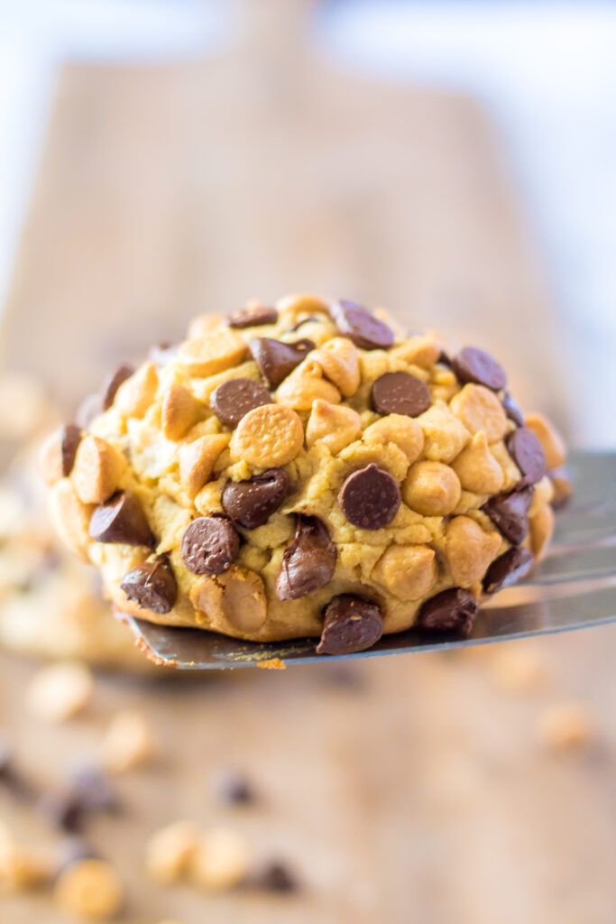I would recommend freezing these cookies before baking. Just form them into the balls and coat in the chips, then place in a single layer on a tray or baking sheet and freeze for 2 hours or until solid. Once solid place your cookie dough balls into a freezer safe bag until ready to use! Thaw on a cookie sheet before baking.