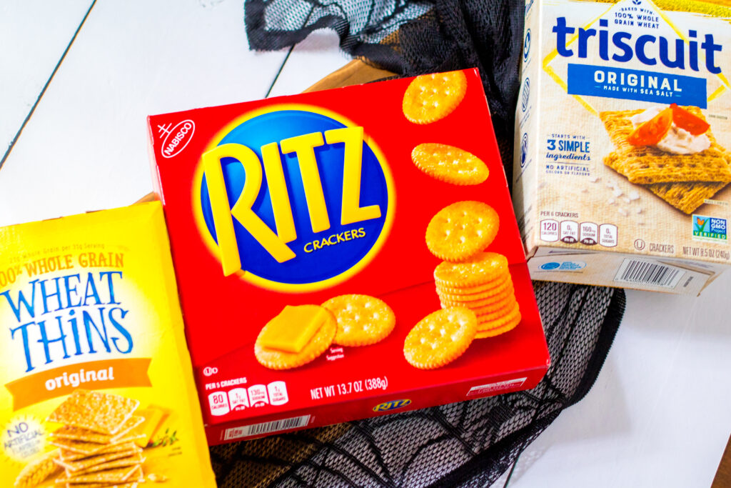Using our favorite crackers like Triscuit, Wheat Thins, and RITZ I whipped up this savory board in no time!