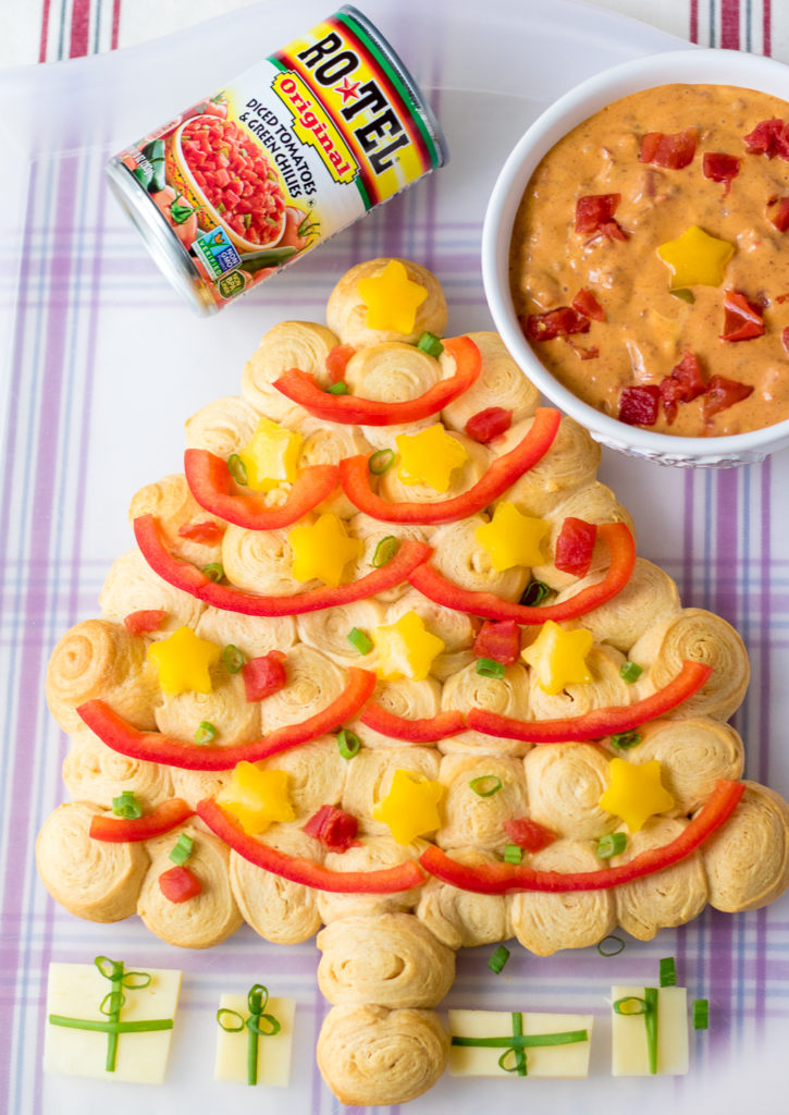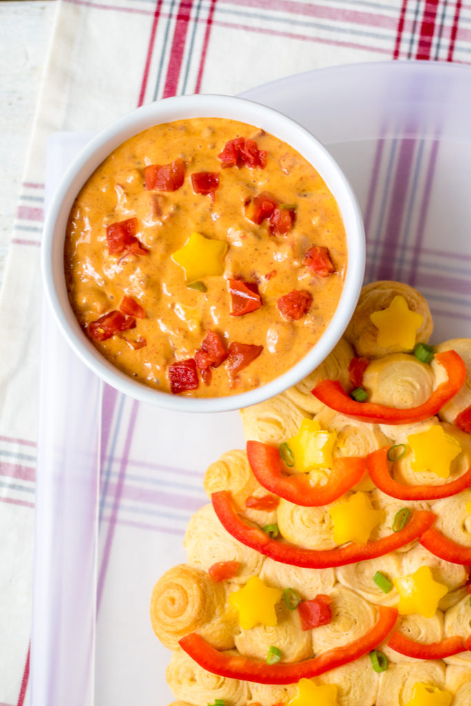 An amazing dip like this needs a great dipper and this tree is perfect for that. I just slice crescent roll dough into rounds and arrange them like a Christmas Tree on the baking pan.