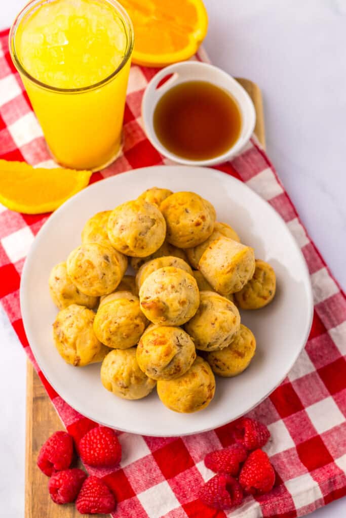 These McGriddle Bites are the perfect breakfast!! They taste just like a McGriddle but in a little poppable bite size. These little bites combine pancake mix, syrup, cheese and sausage to create the absolute perfect breakfast bite. You get your sweet and savory all in one little mouthful. Make these at the beginning of the week and have easy breakfast all week long.
