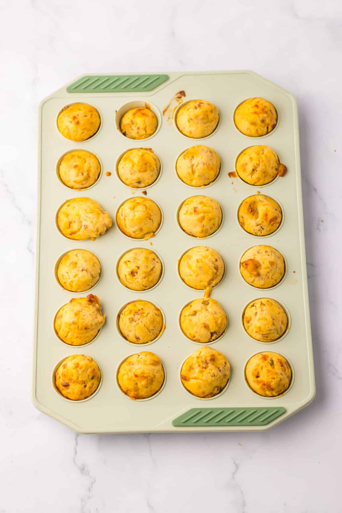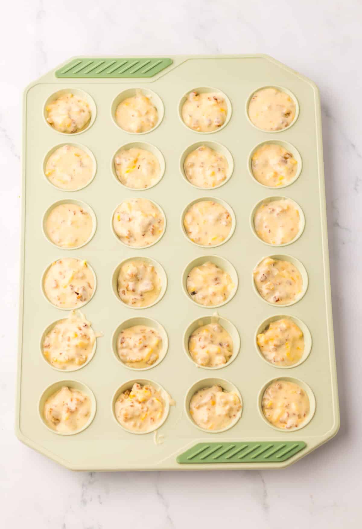 Fill your pans: Spoon the batter into mini muffin tins. If you’re using metal tins, grease them or line with paper liners. (Silicone works great for easy removal!)