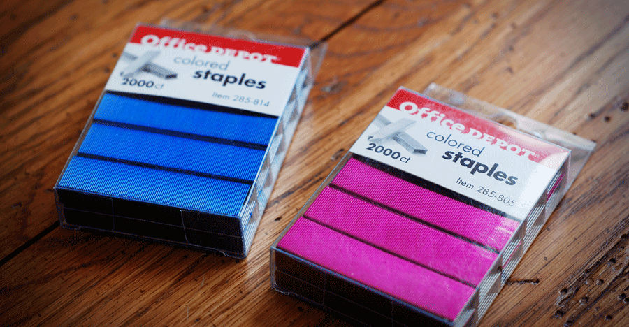Now to staple your book together… we’re almost done!! I found these adorable coordinating staples at Office Depot. I’ve seen them at many other office stores.