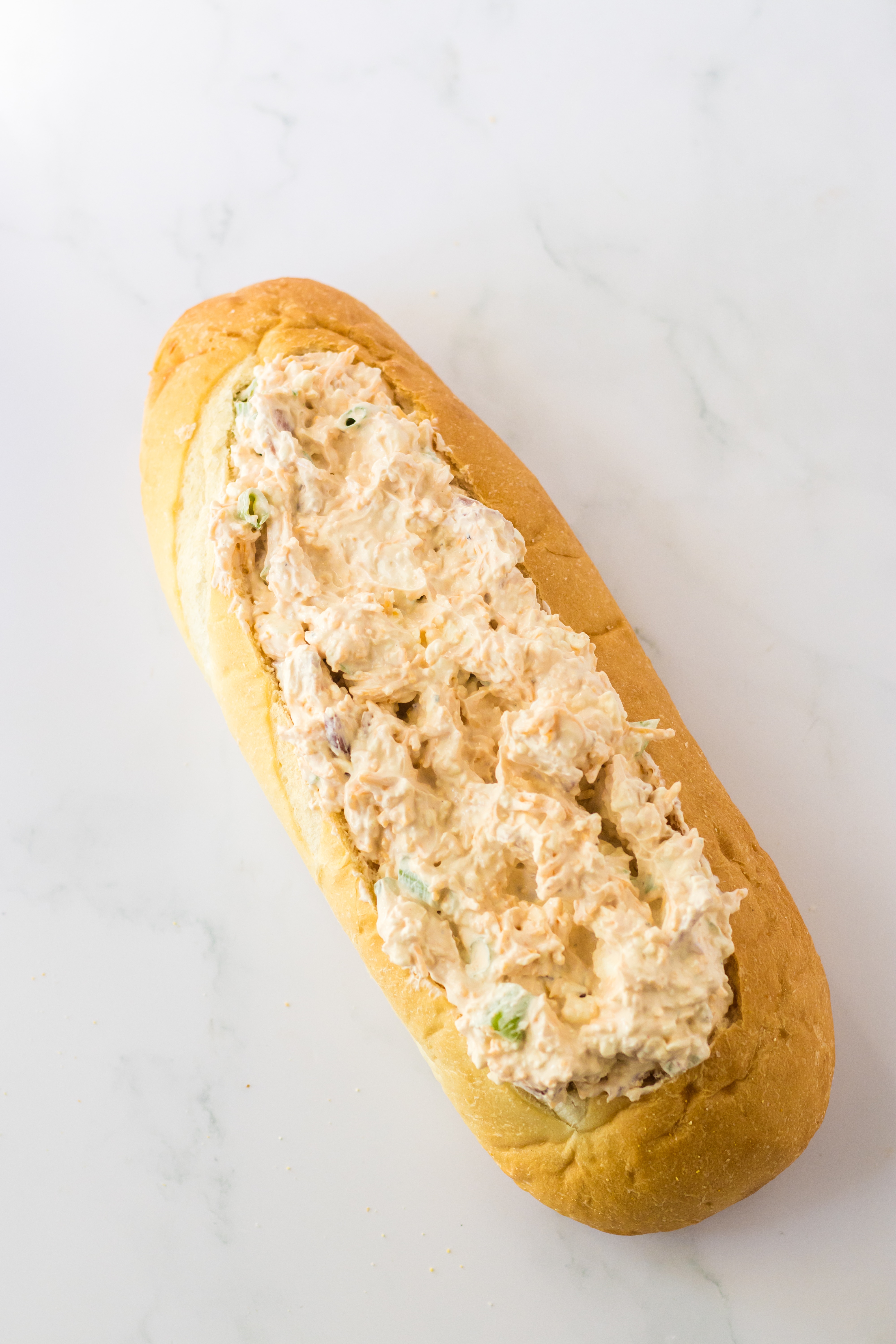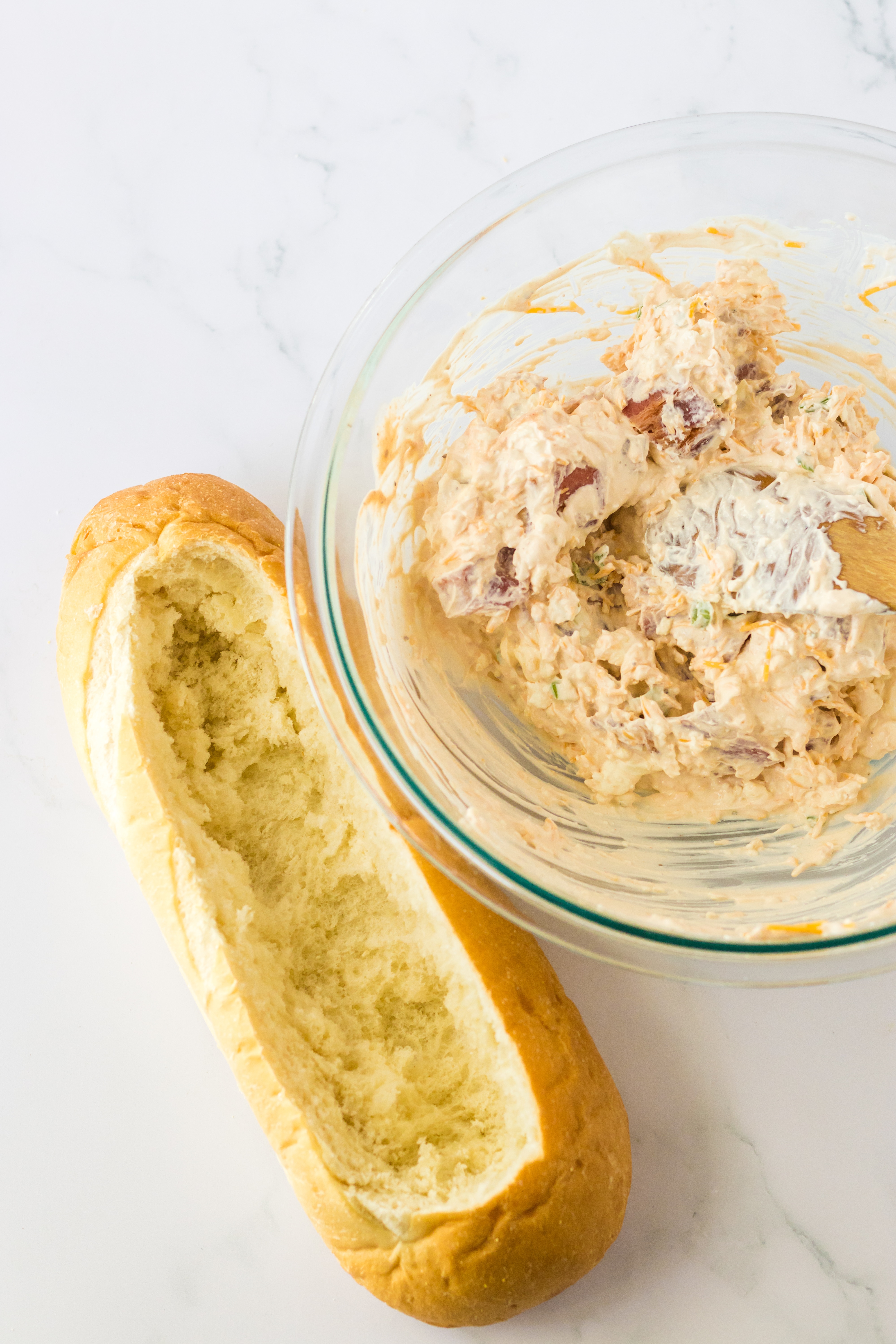 - Fill the loaf with the dip mixture.