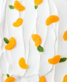 This fabulous cake starts with a simple vanilla cookie crust, a creamy cream cheese layer, and a luscious orange cream layer before getting topped with whipped cream and oranges.