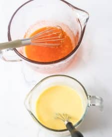 - Whisk the orange gelatin into the vanilla pudding until completely combined.
