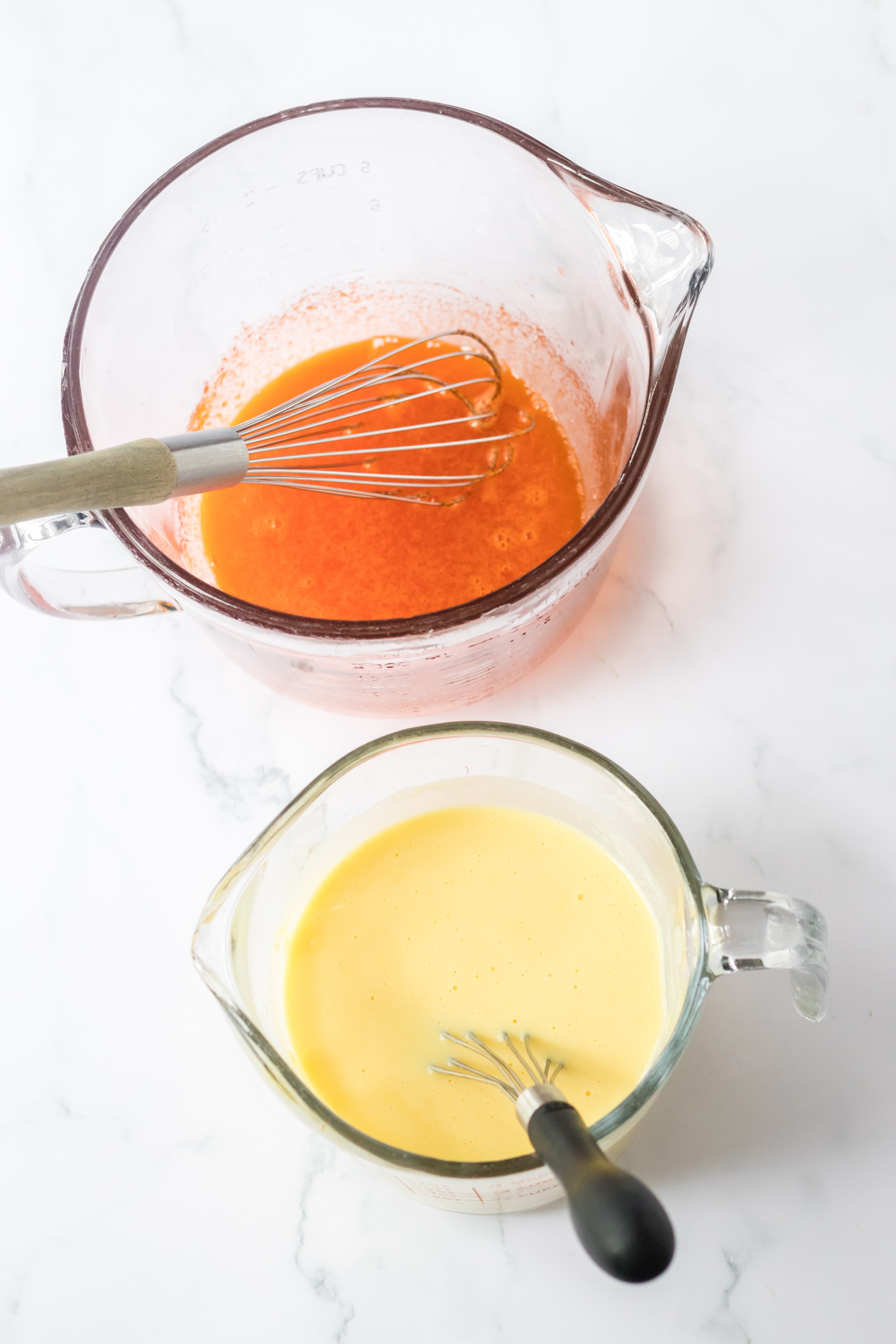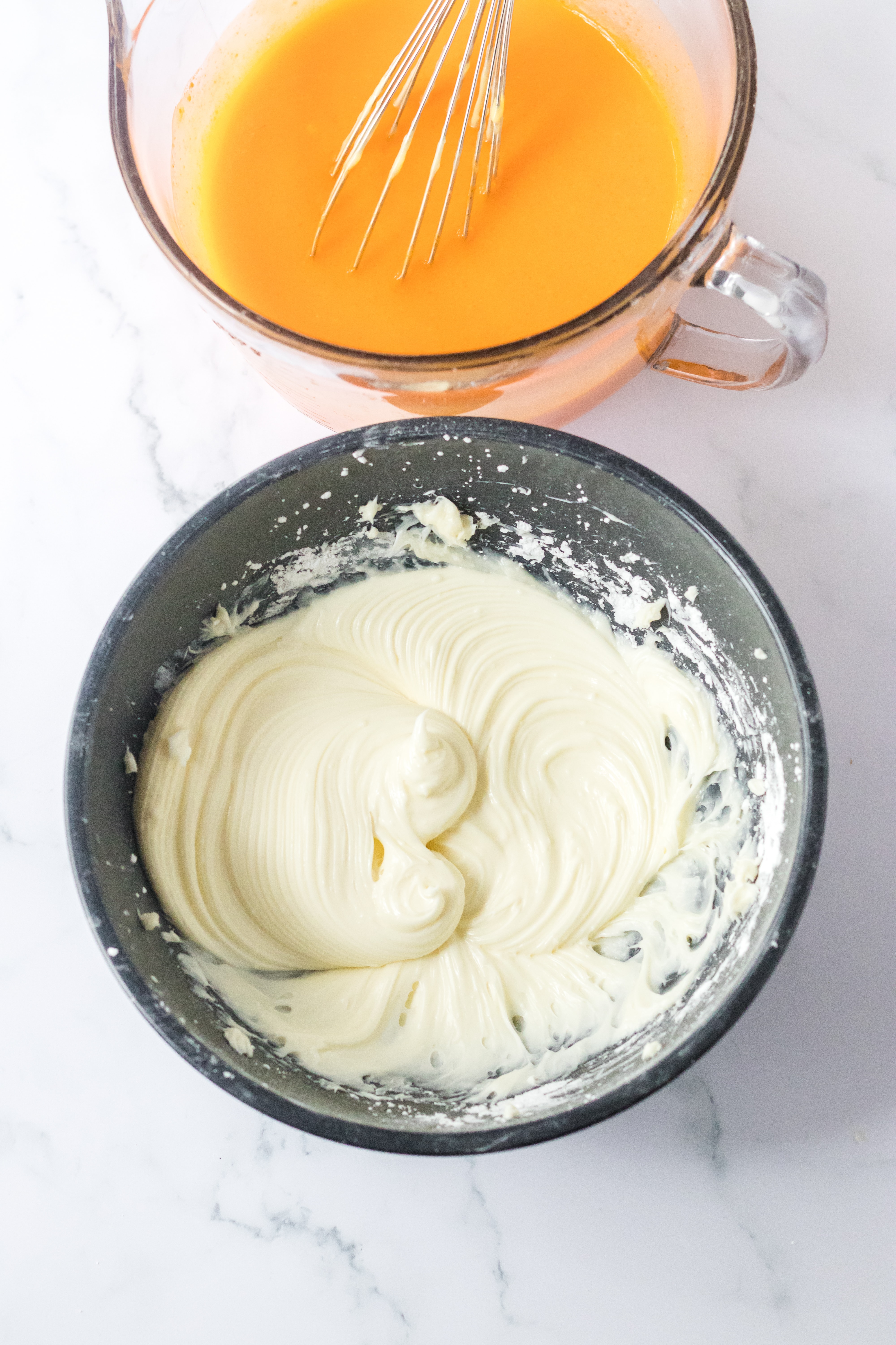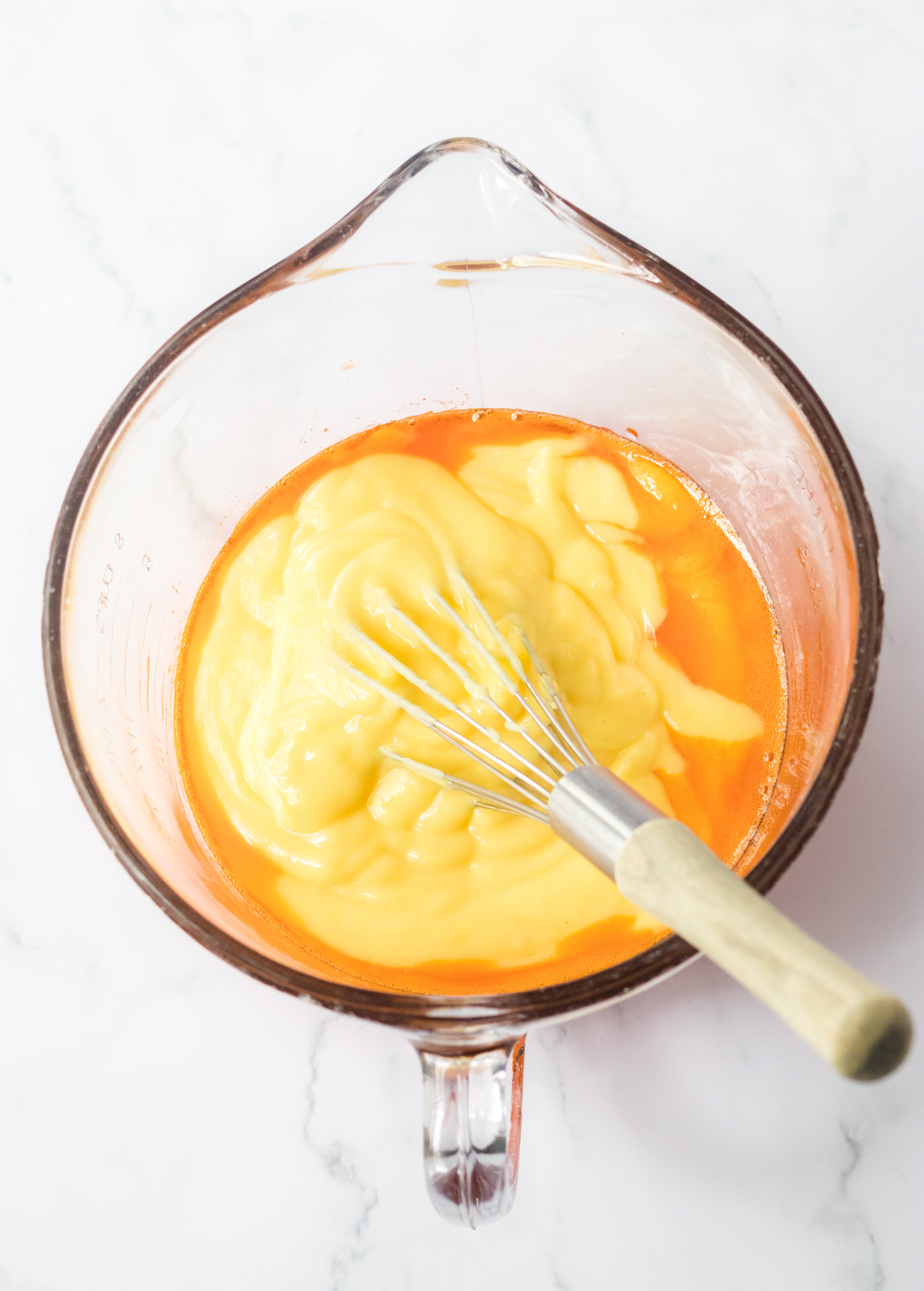 - Whisk the orange gelatin into the vanilla pudding until completely combined.