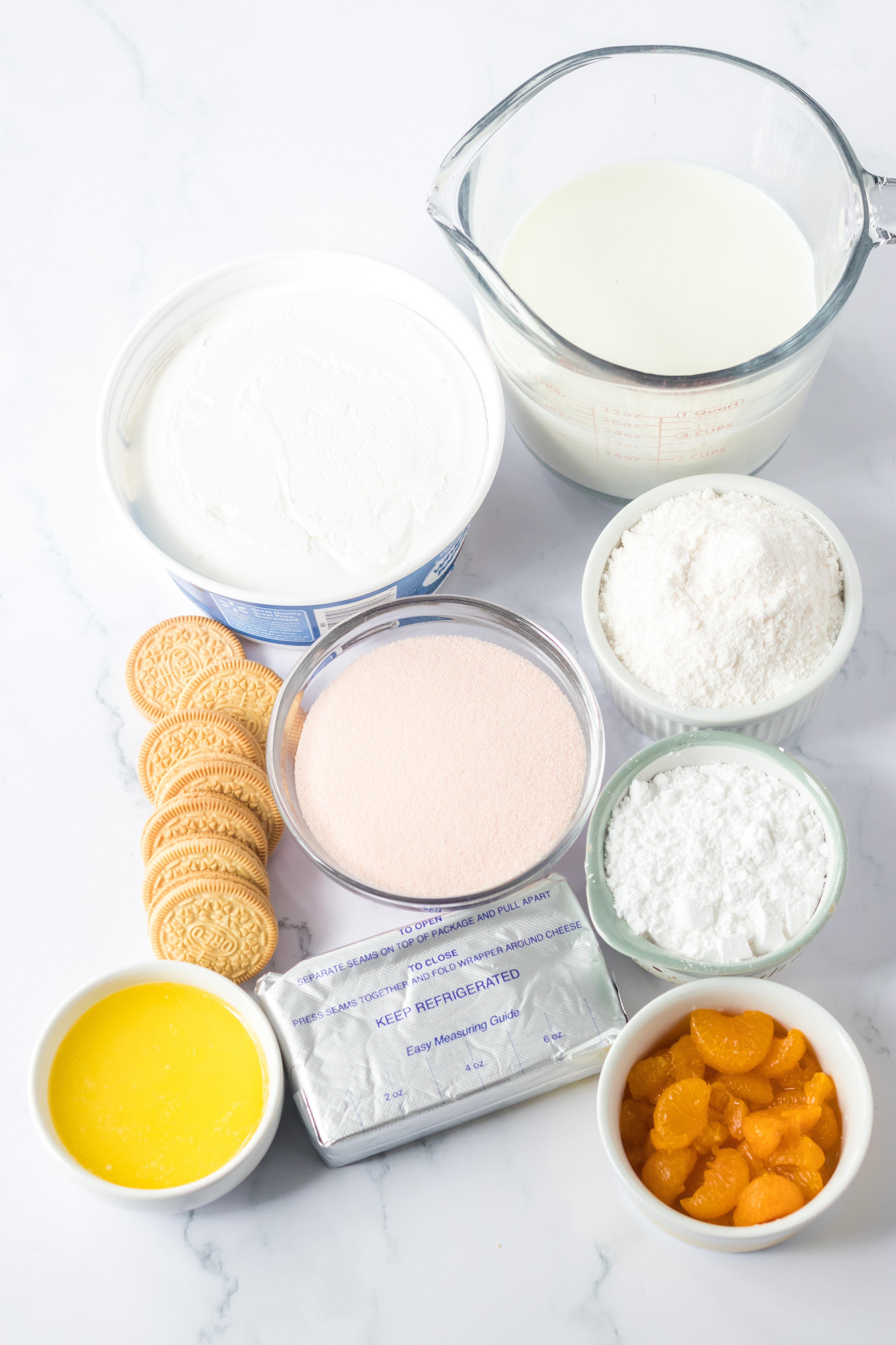- Orange Gelatin – This is where this dessert gets its orange flavor. You need it for the orange jello layer.