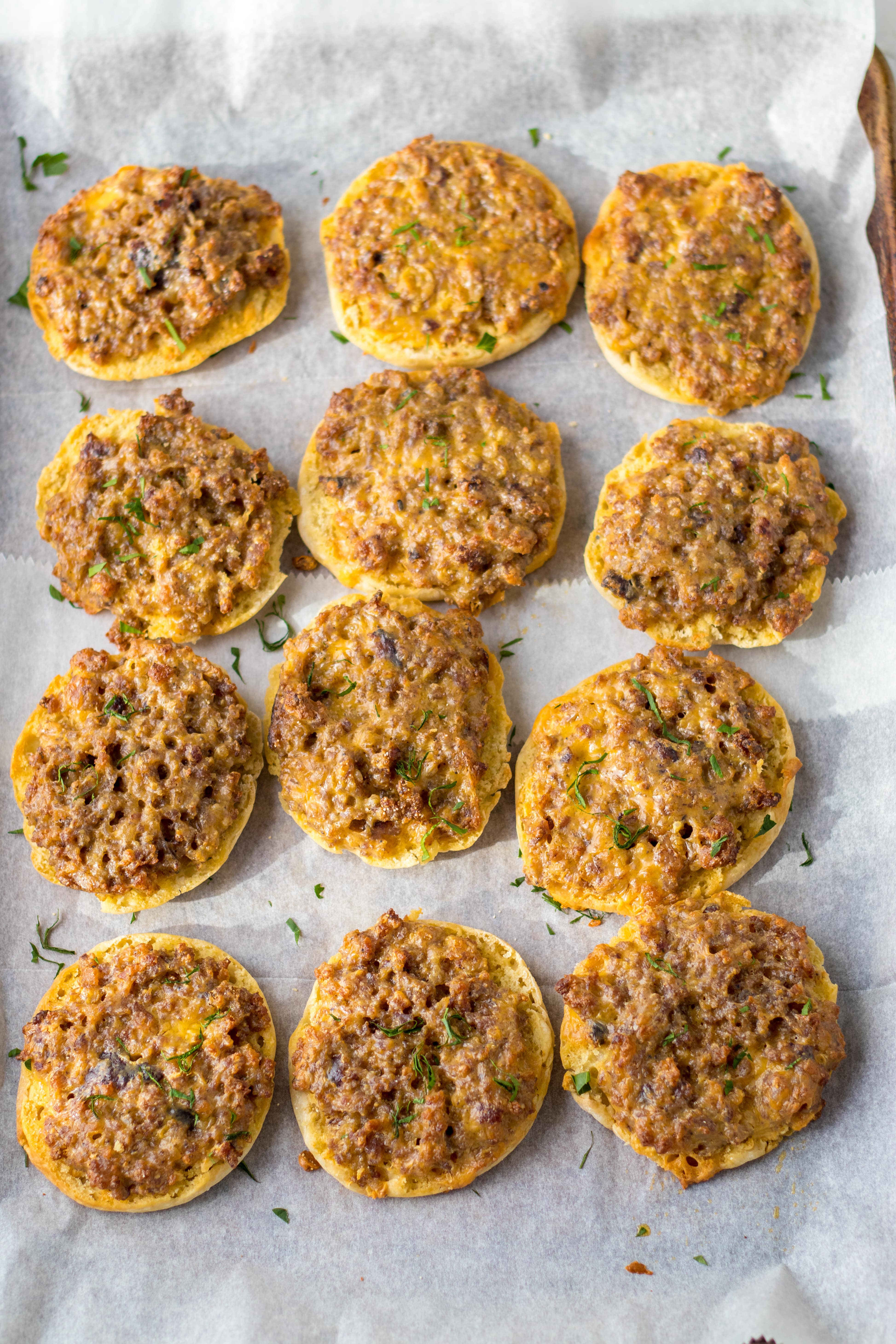 So this is a good old classic recipe that everyone probably forgot about, but not my family!  My grandma has been making these forever and our whole family loves them.  What’s not to like about cheese and sausage baked into an english muffins.  Those nooks and crannies are perfect for holding all this yummy goodness.  I love that it is such an easy recipe.