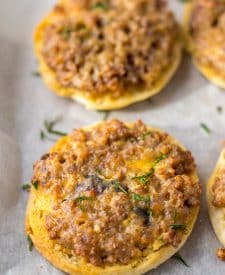 So this is a good old classic recipe that everyone probably forgot about, but not my family! My grandma has been making these forever and our whole family loves them. What’s not to like about cheese and sausage baked into an english muffins. Those nooks and crannies are perfect for holding all this yummy goodness. I love that it is such an easy recipe.