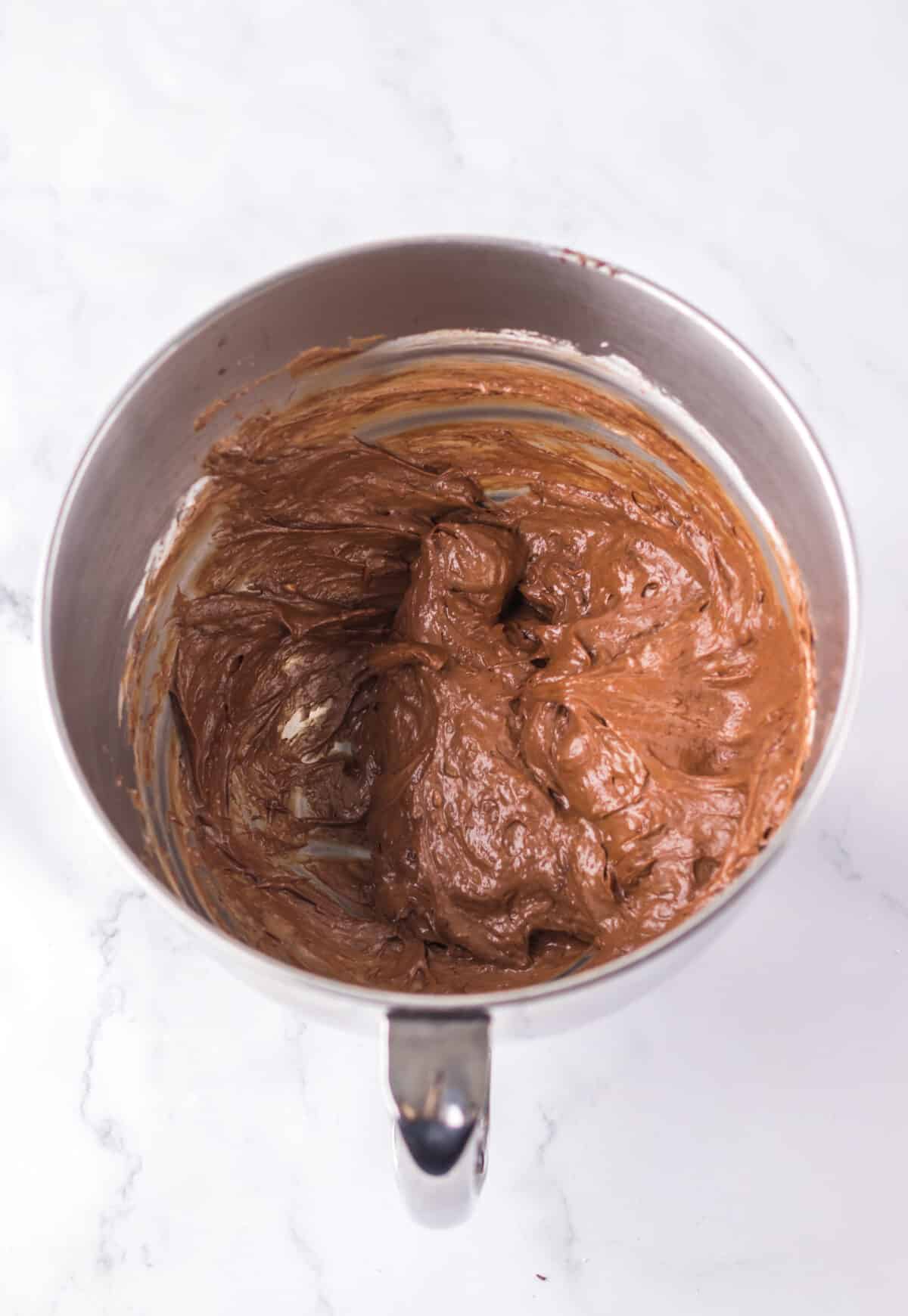 - Whip the cream until soft peaks form. Fold into the chocolate mixture.