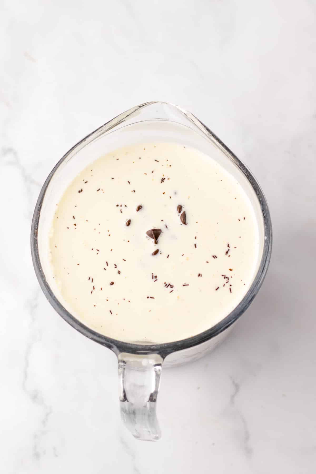 - Add your chocolate chips to the hot cream and let sit for 5 minutes.