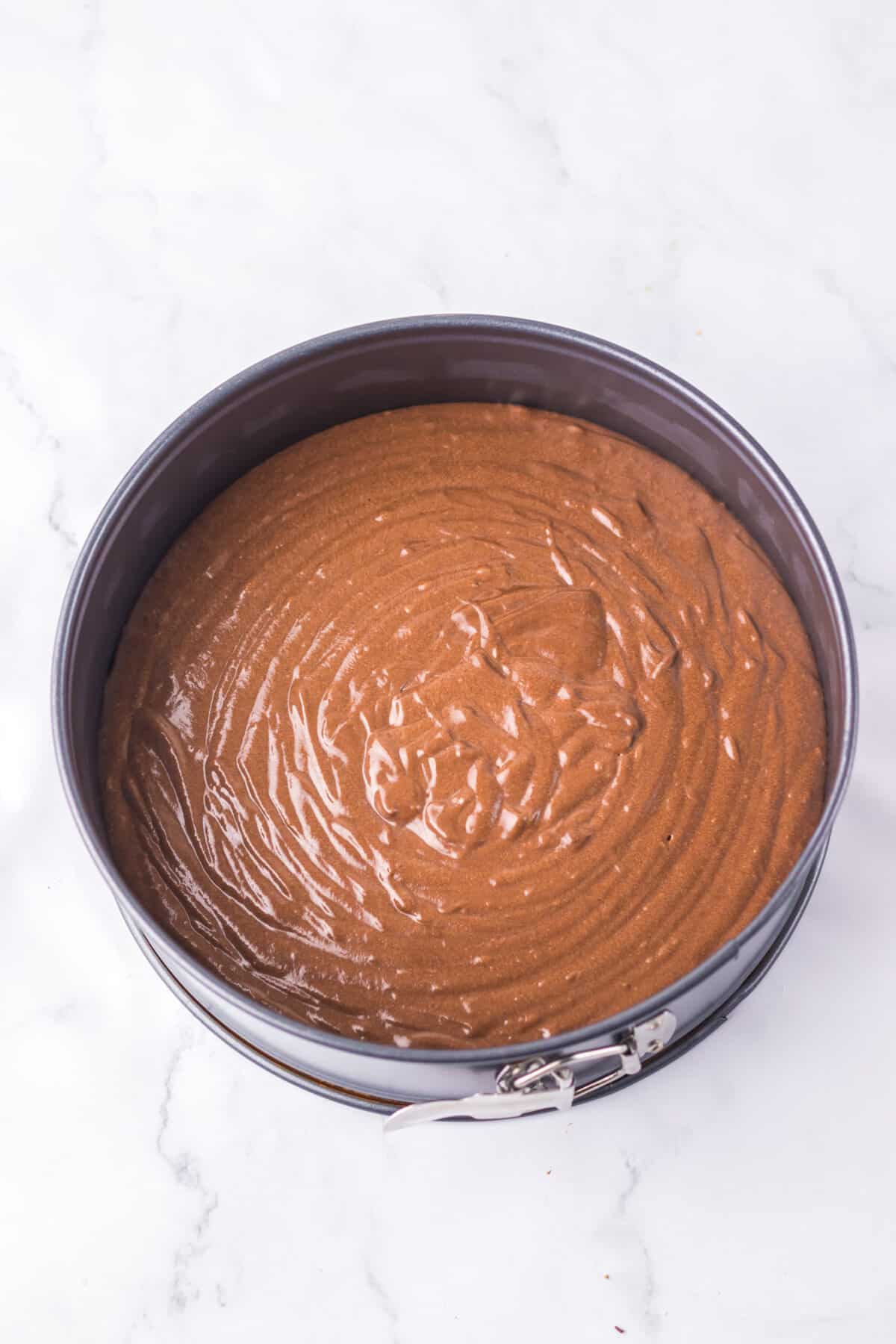- Pour batter into a parchment-lined 8 inch springform pan.