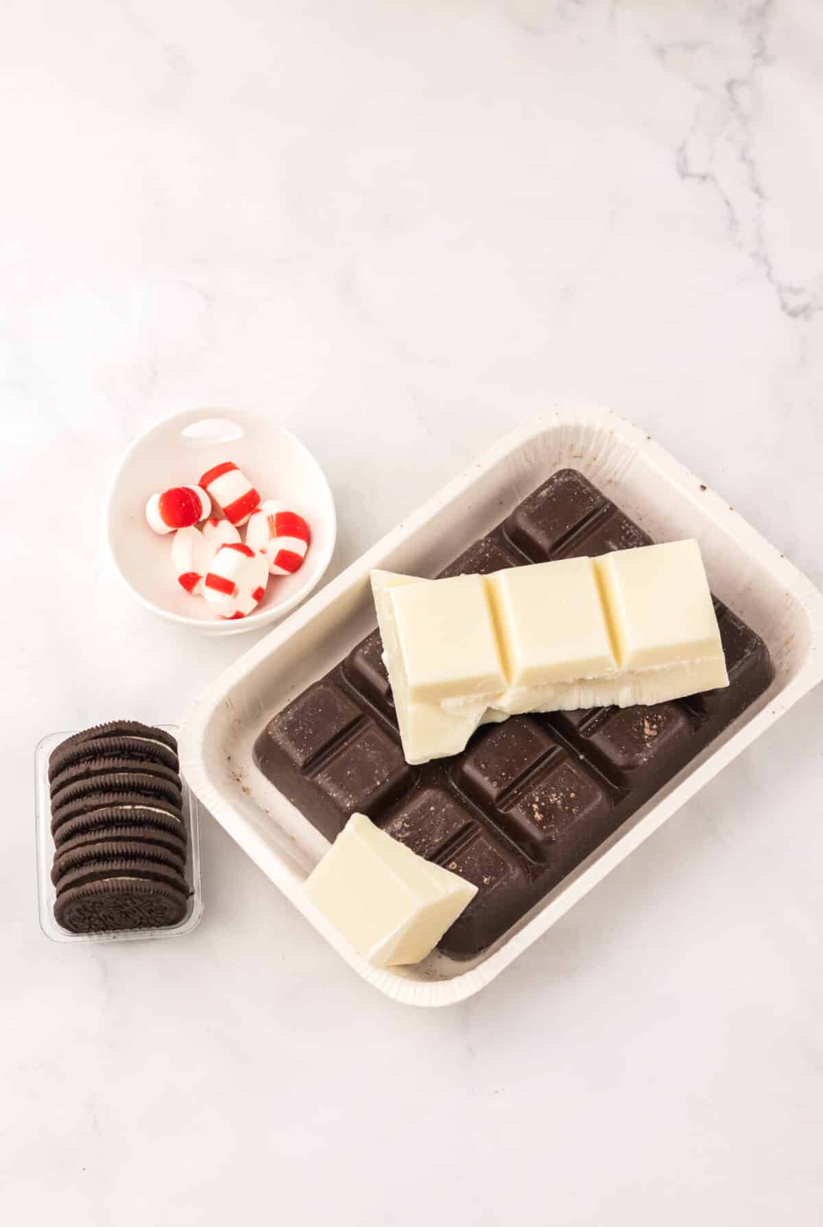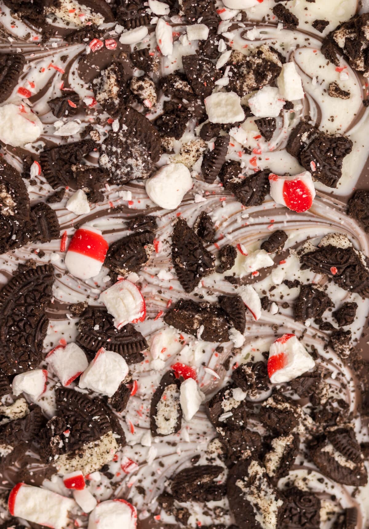 It’s similar to classic peppermint bark but with that creamy cookies-and-cream flavor added in, and it only takes about 10 minutes to make.