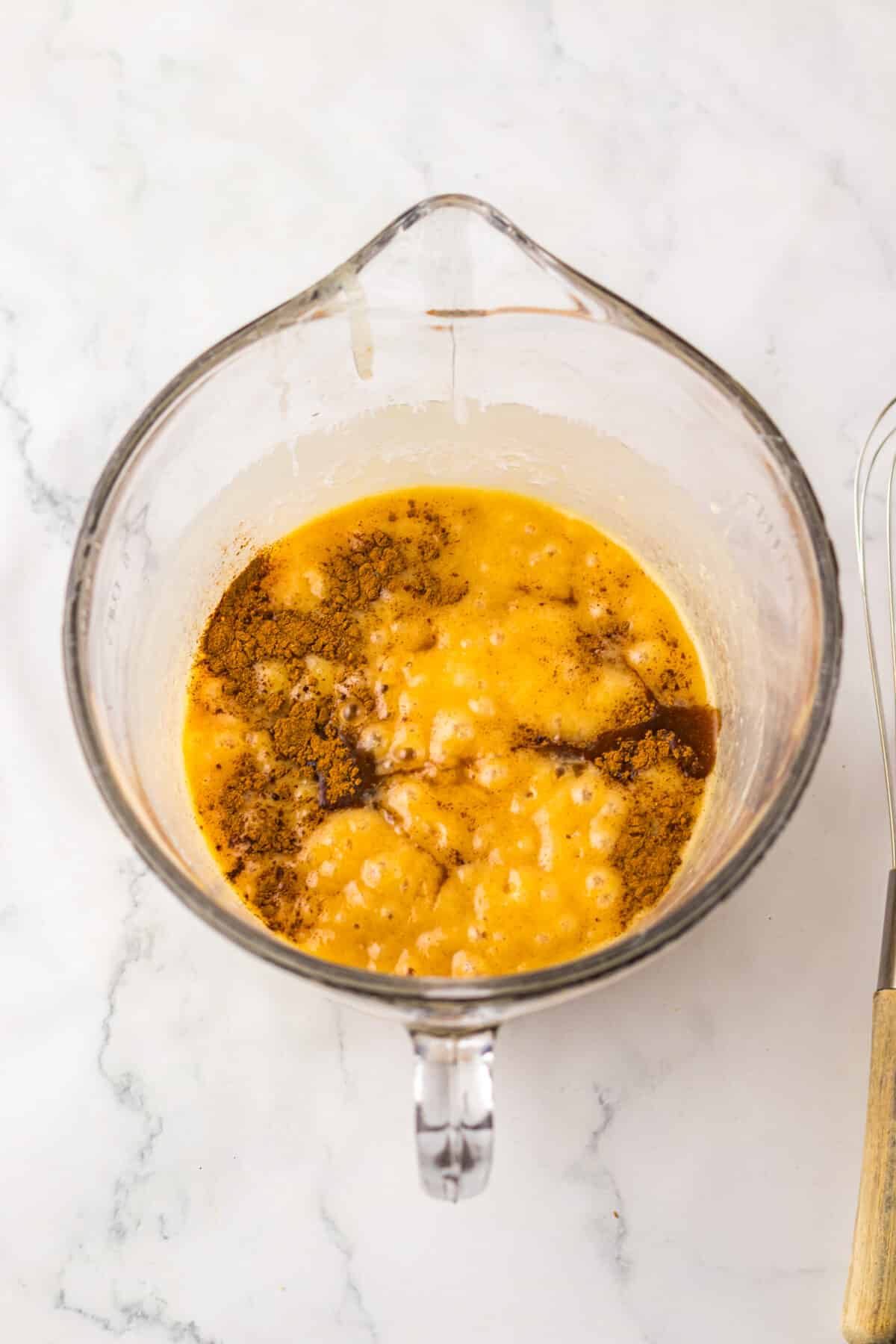 Add flavor – Carefully whisk in vanilla and pumpkin pie spice.