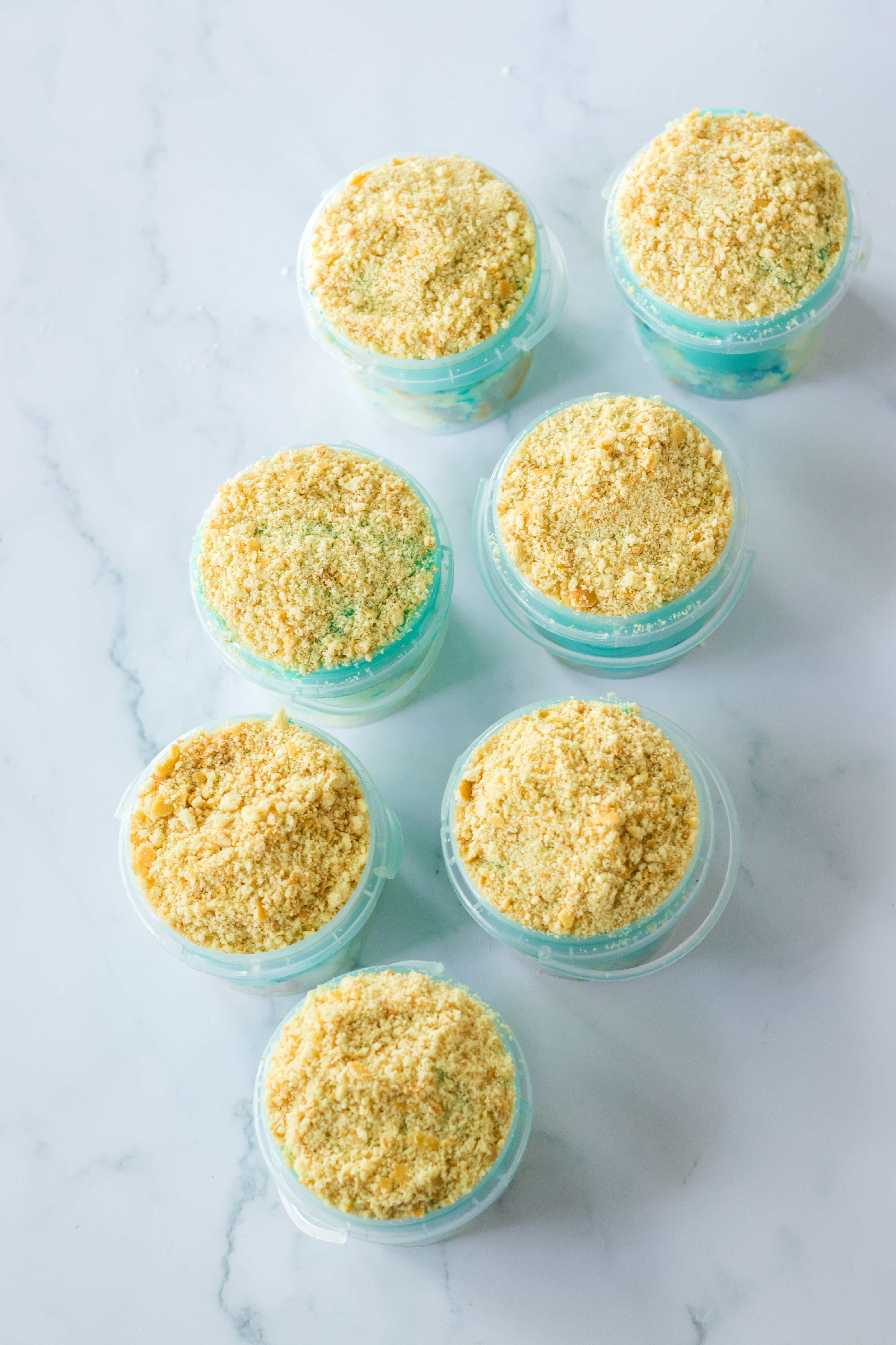 Of course! I also like to use the clear disposable 9 ounce cups. They are perfect for seeing all the layers. I used these little buckets and they were perfect! Get them here —> Buckets