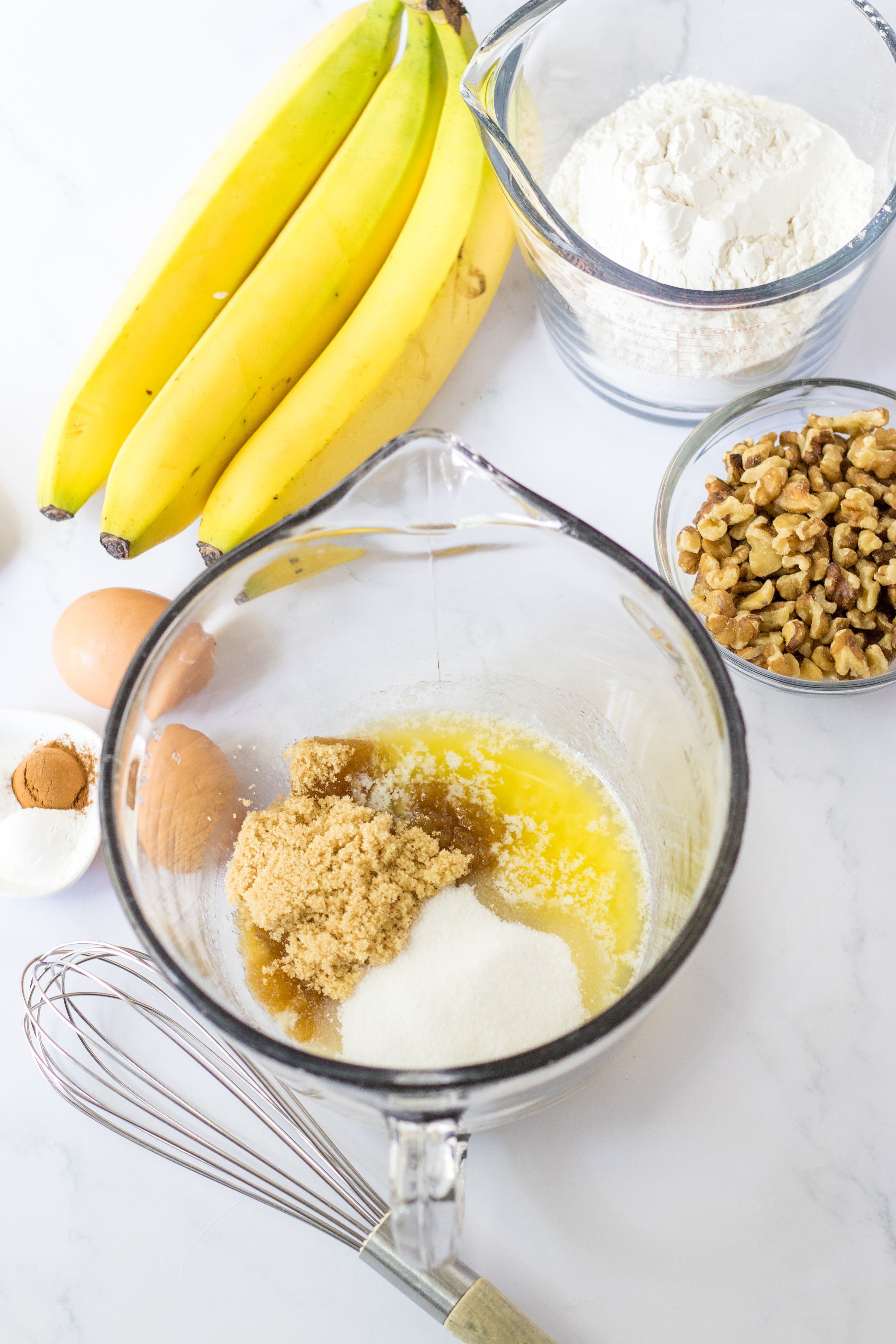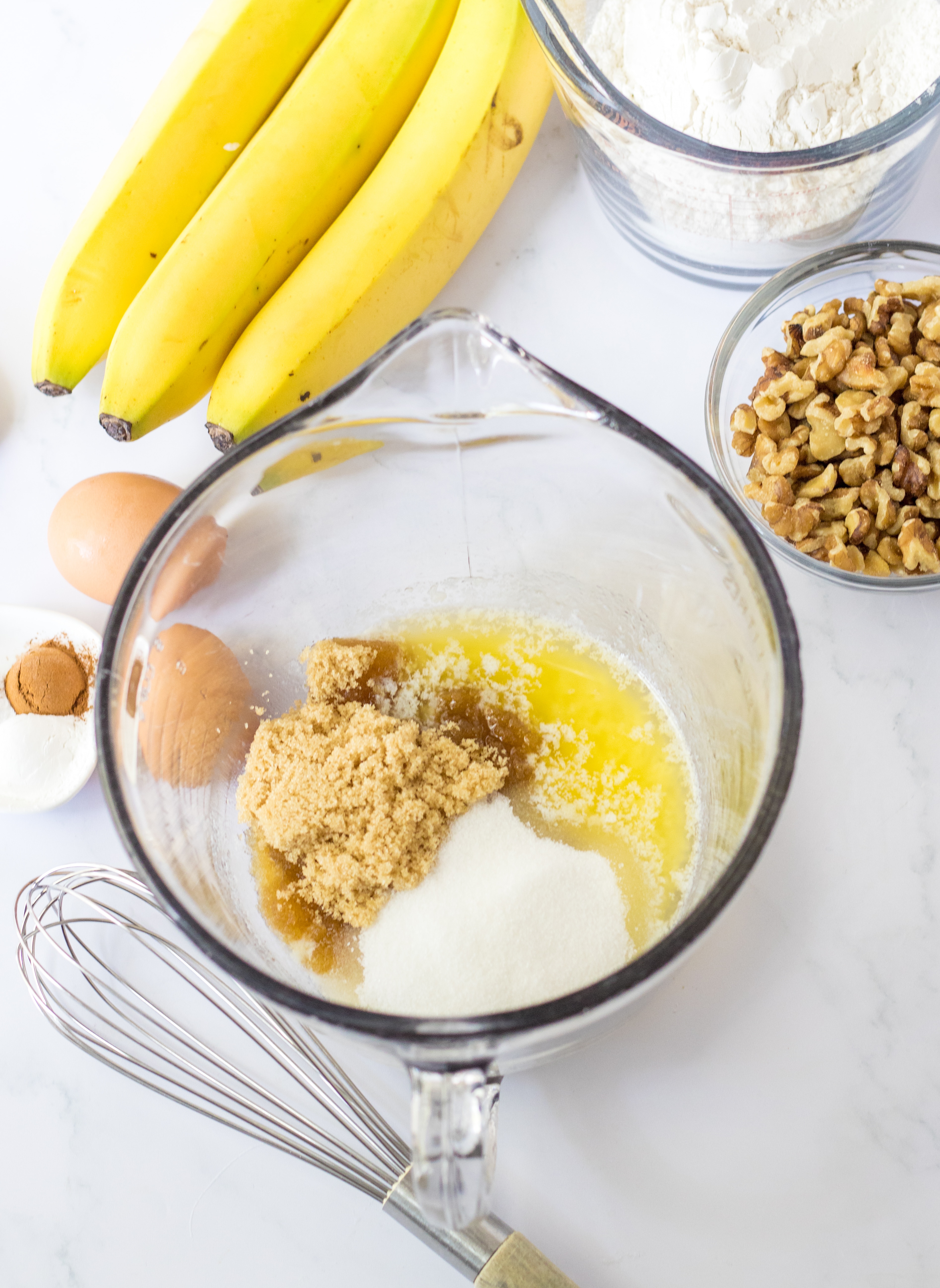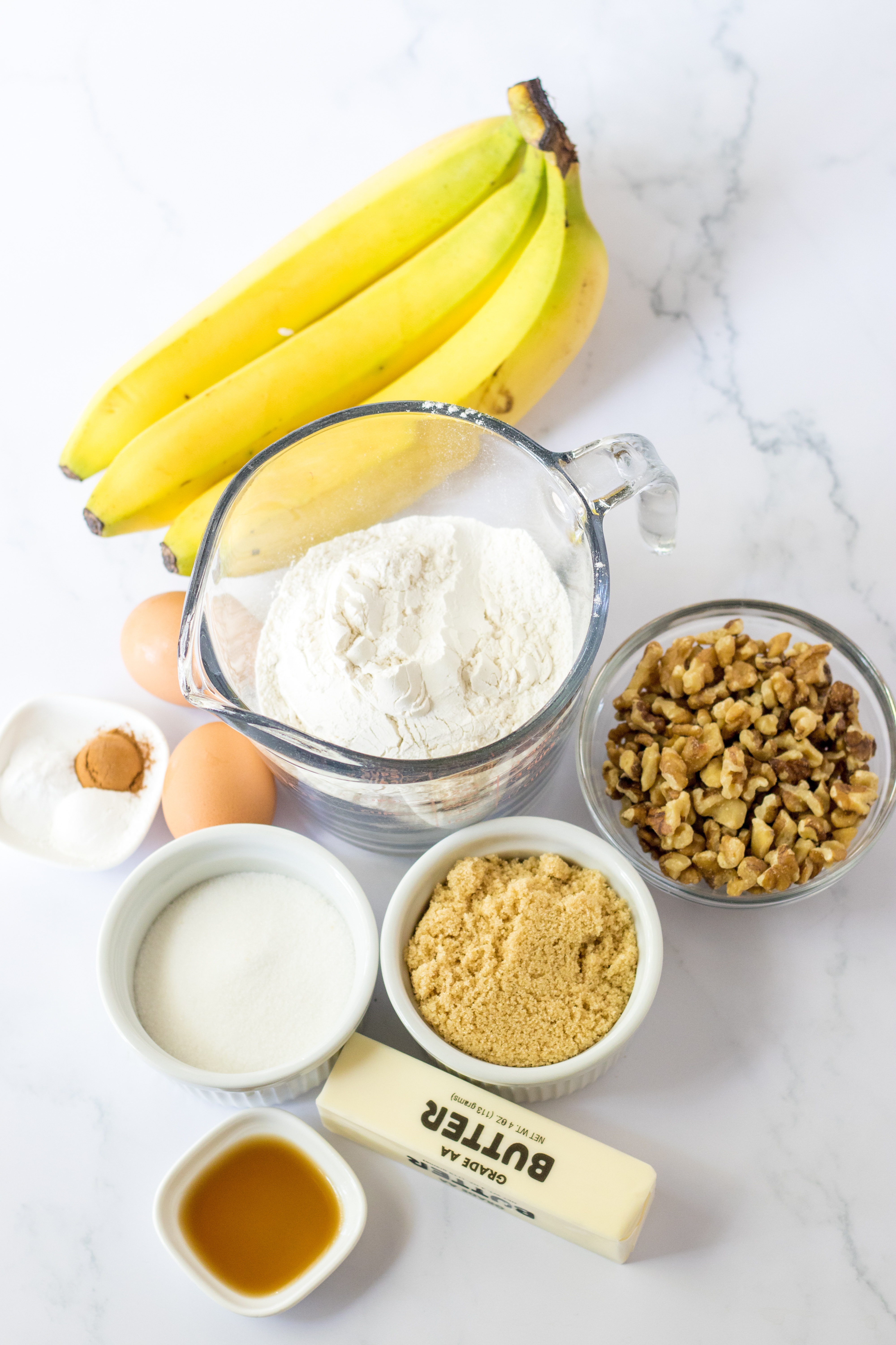 • Sugar – We use both type of sugar in this recipe to make the best banana bread.