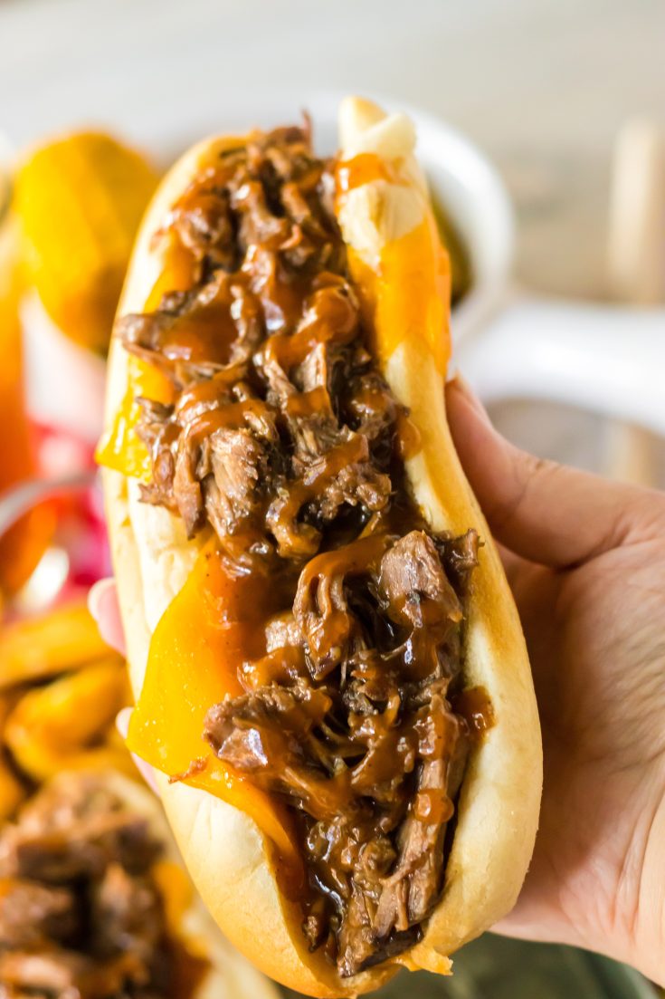 There is nothing I love more an easy dinner that I can just throw in the slow cooker that everyone will love and these bbq beef subs fit the bill.