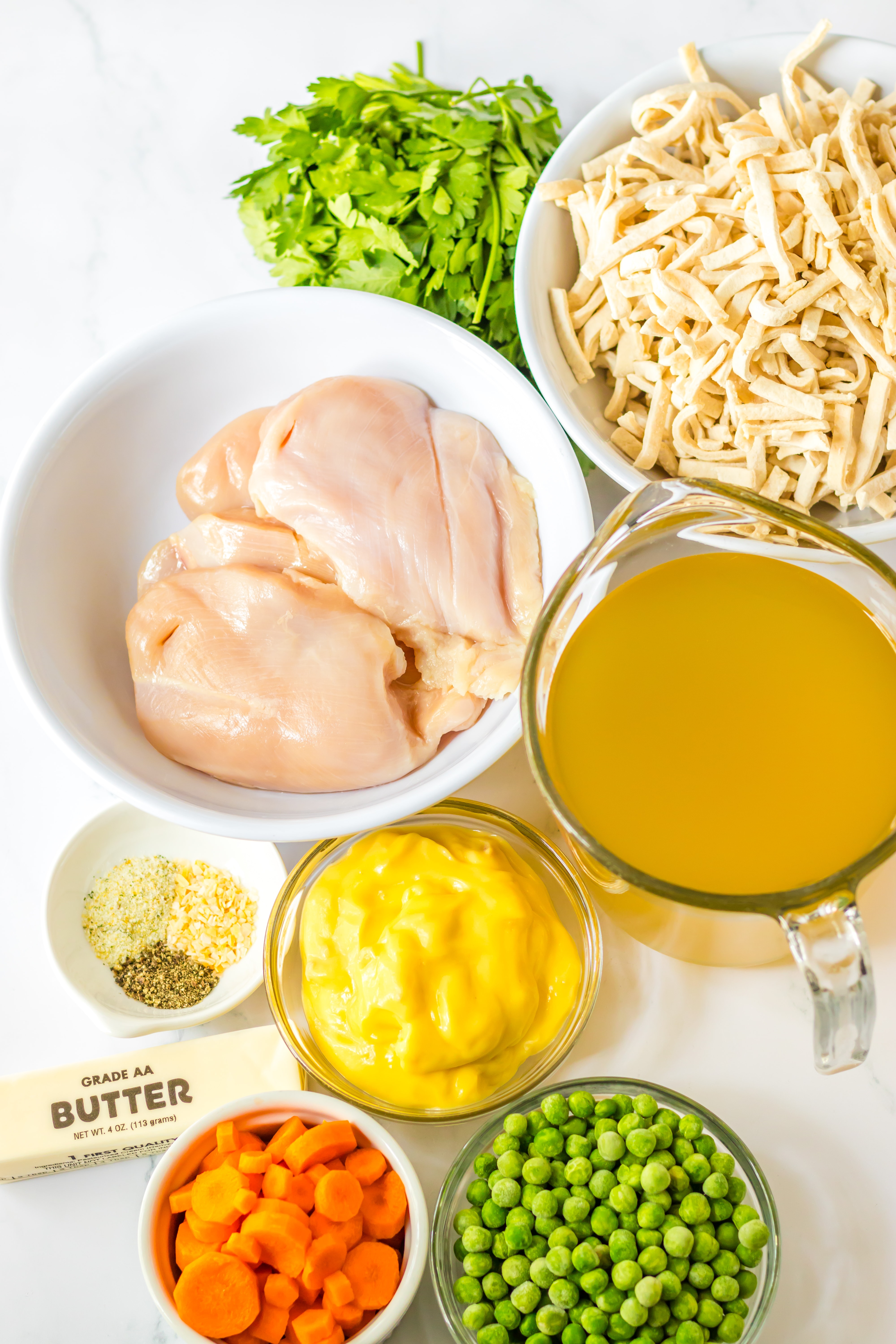 - 2 (10.5) ounce cans cream of chicken soup